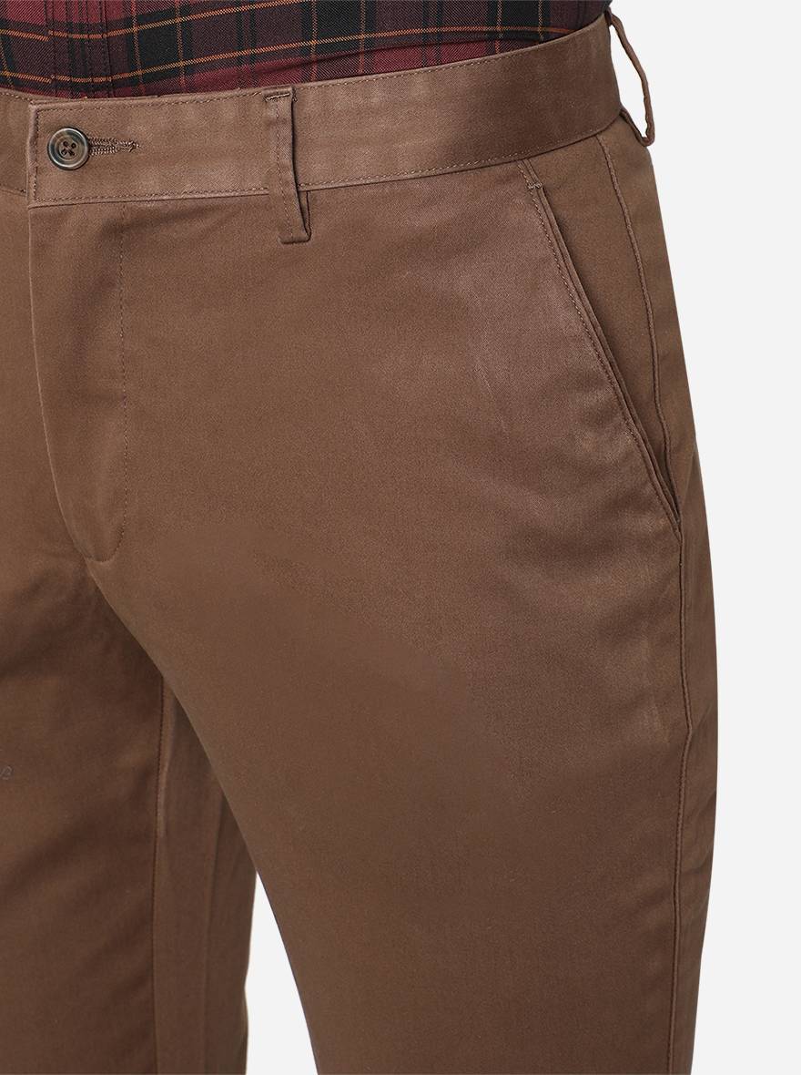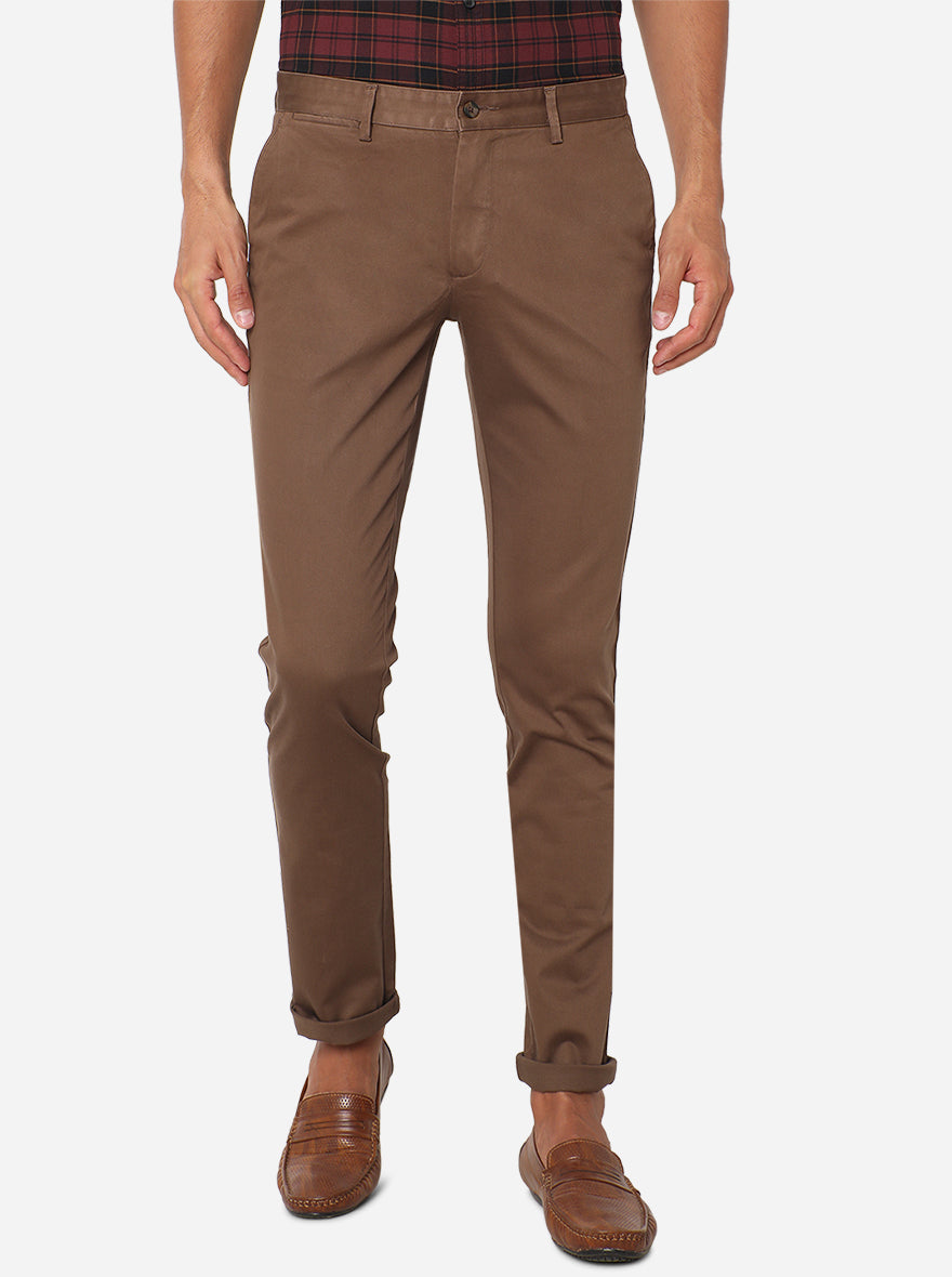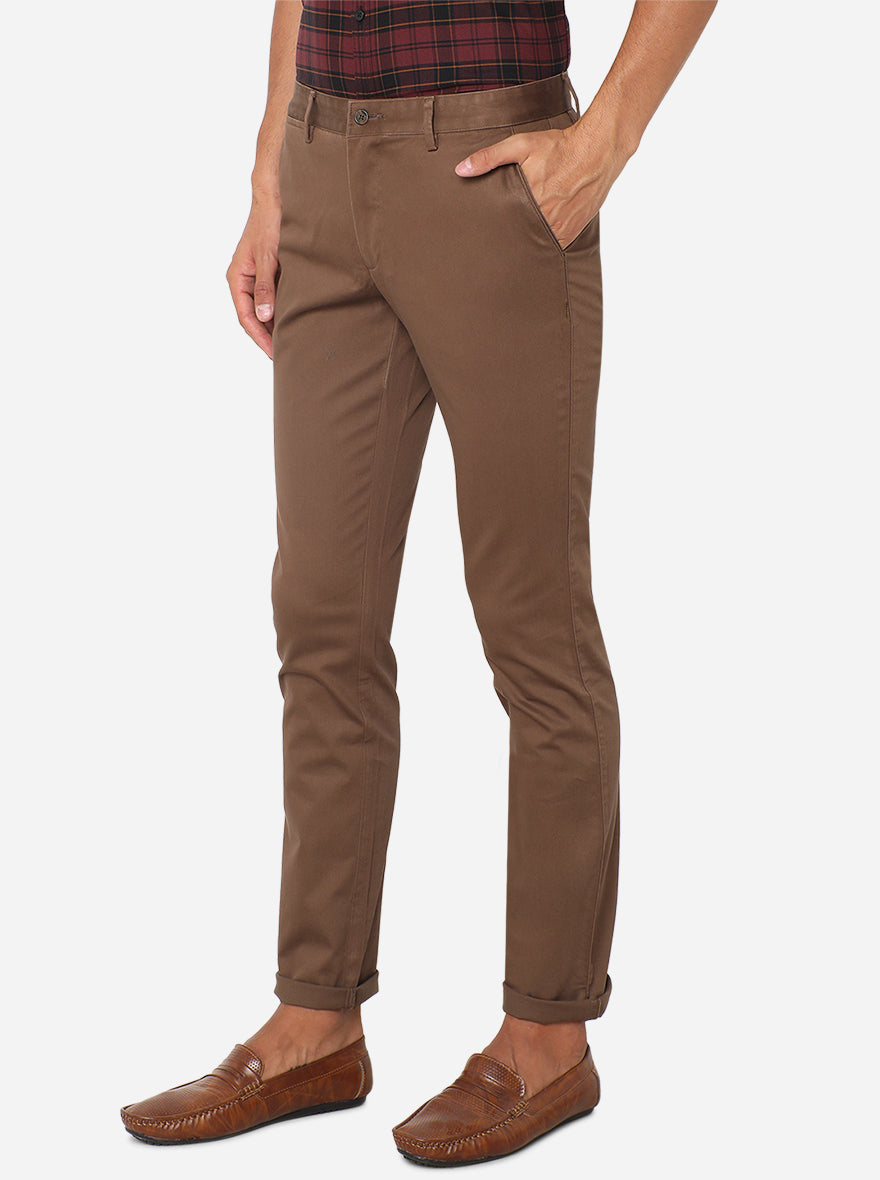 Dark Khaki Solid Super Slim Fit Casual Trouser | Greenfibre