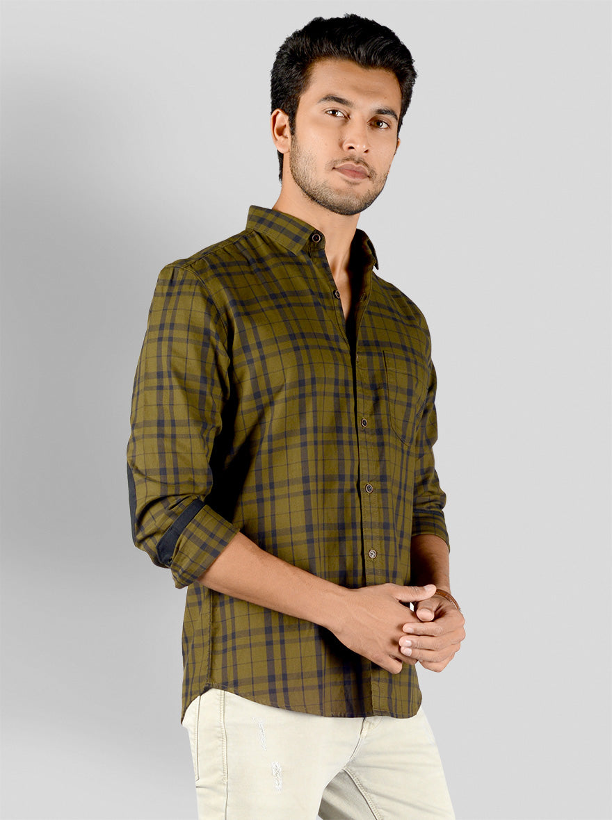 Dark Olive Green Checked Slim Fit Casual Shirt | JadeBlue