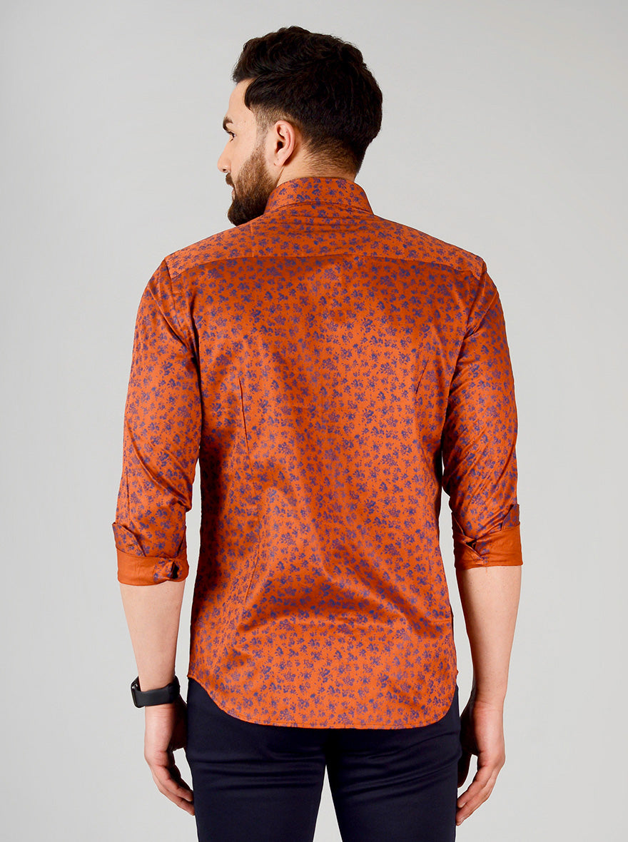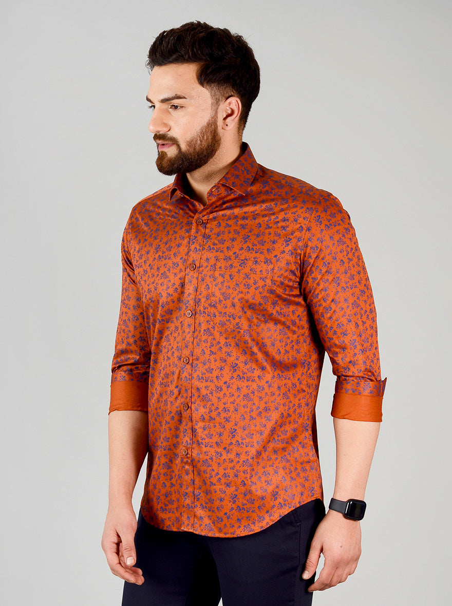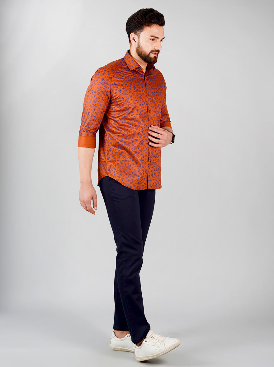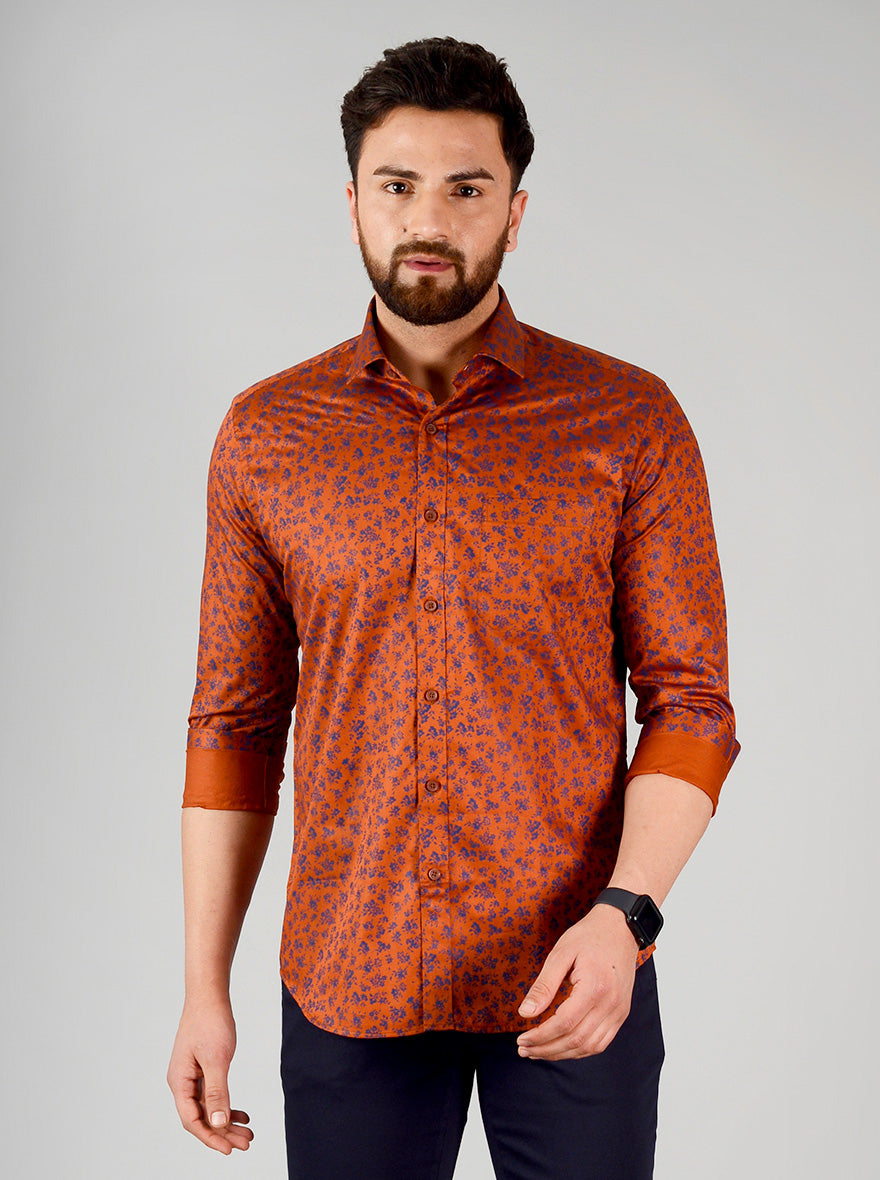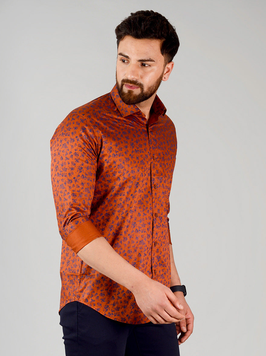 Dark Rust & Blue Printed Slim Fit Formal Shirt | JadeBlue