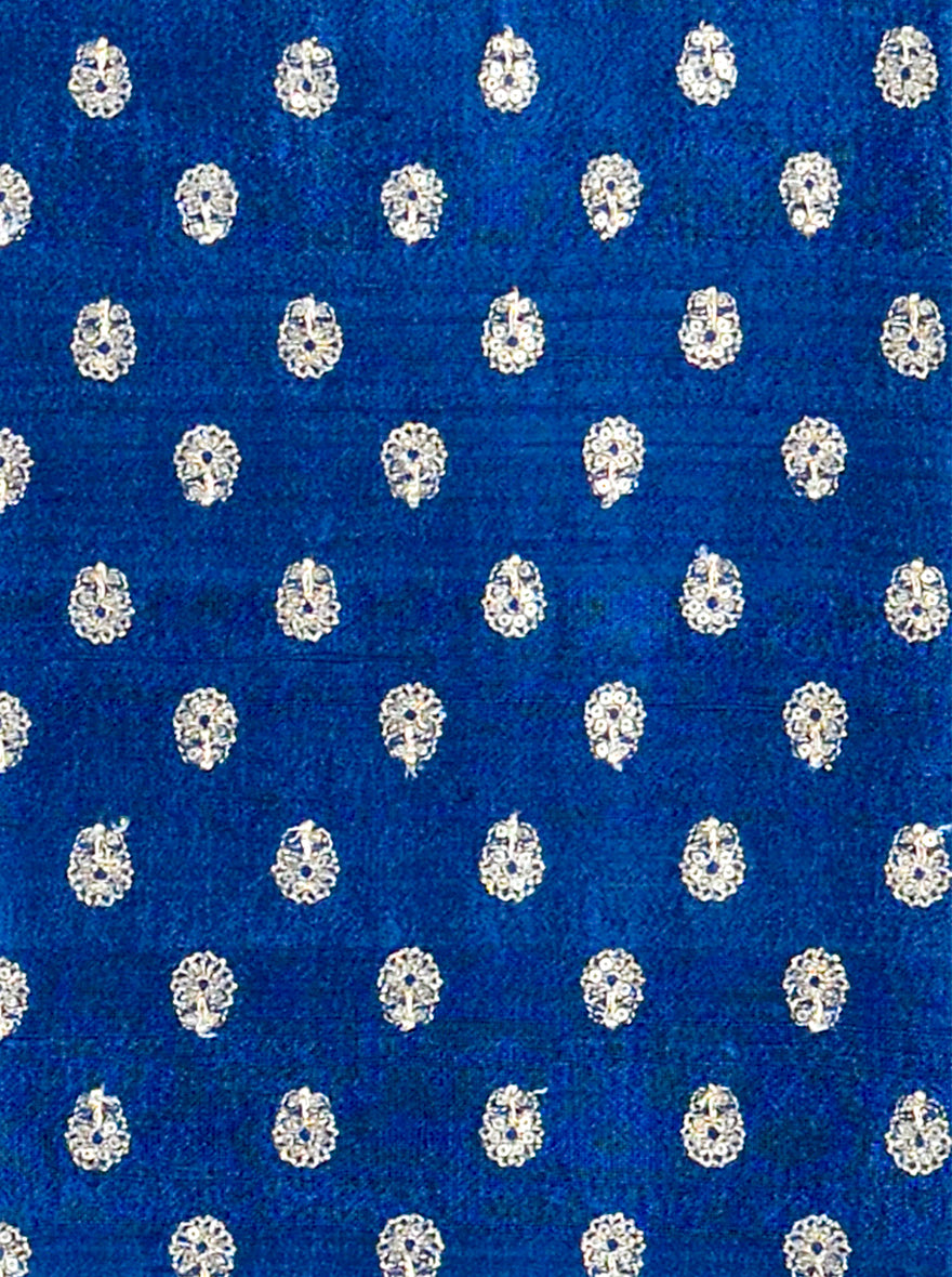 Details: This embroidered dark blue kurta will enhance your overall style statement in a distinct way. Tailored using raw silk fabric, this regular fit kurta features piping work on collar and sleeves hemline, mandarin collar and short buttons placket.