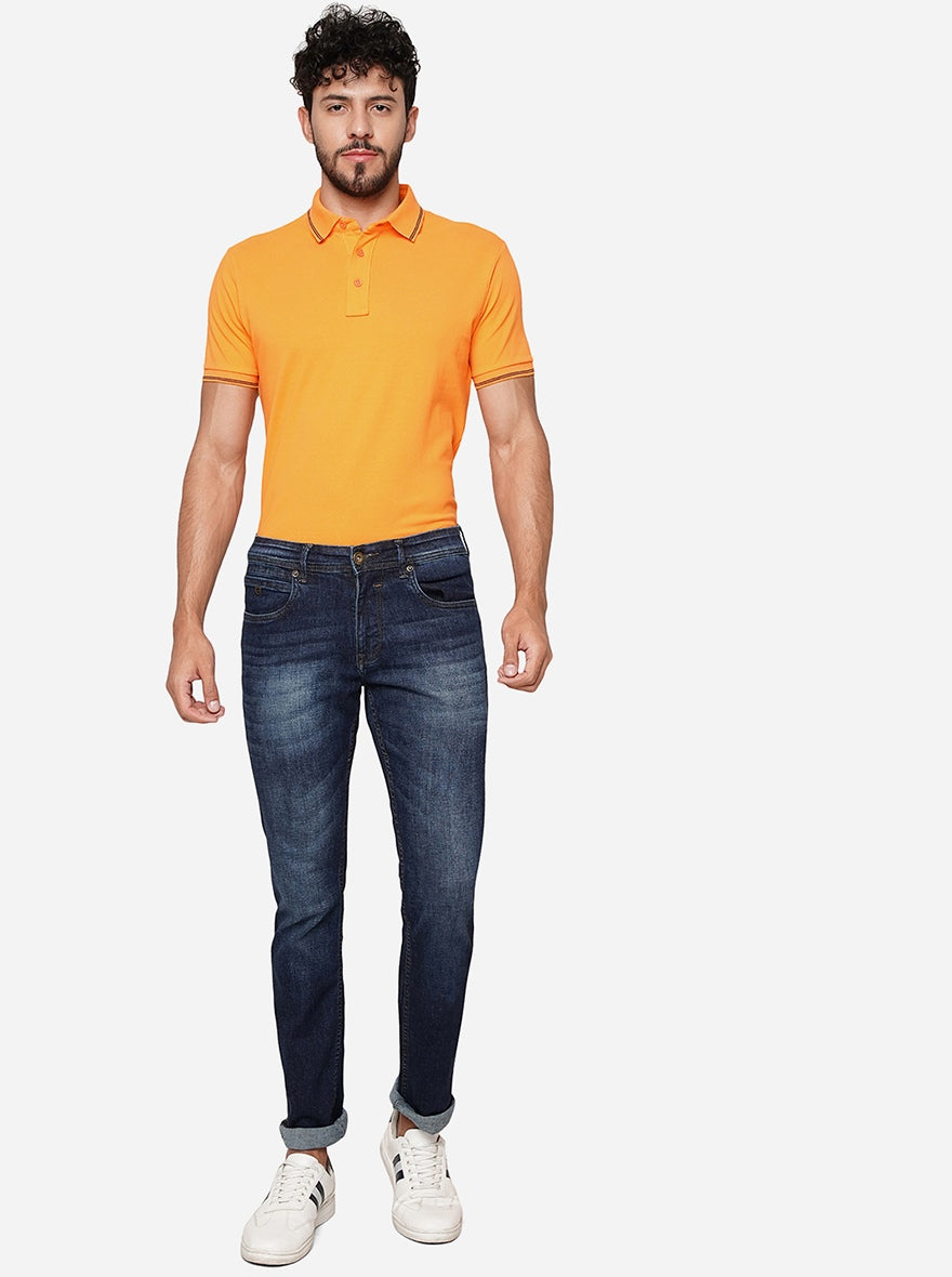 Denim Blue Washed Straight Fit Jeans | Greenfibre