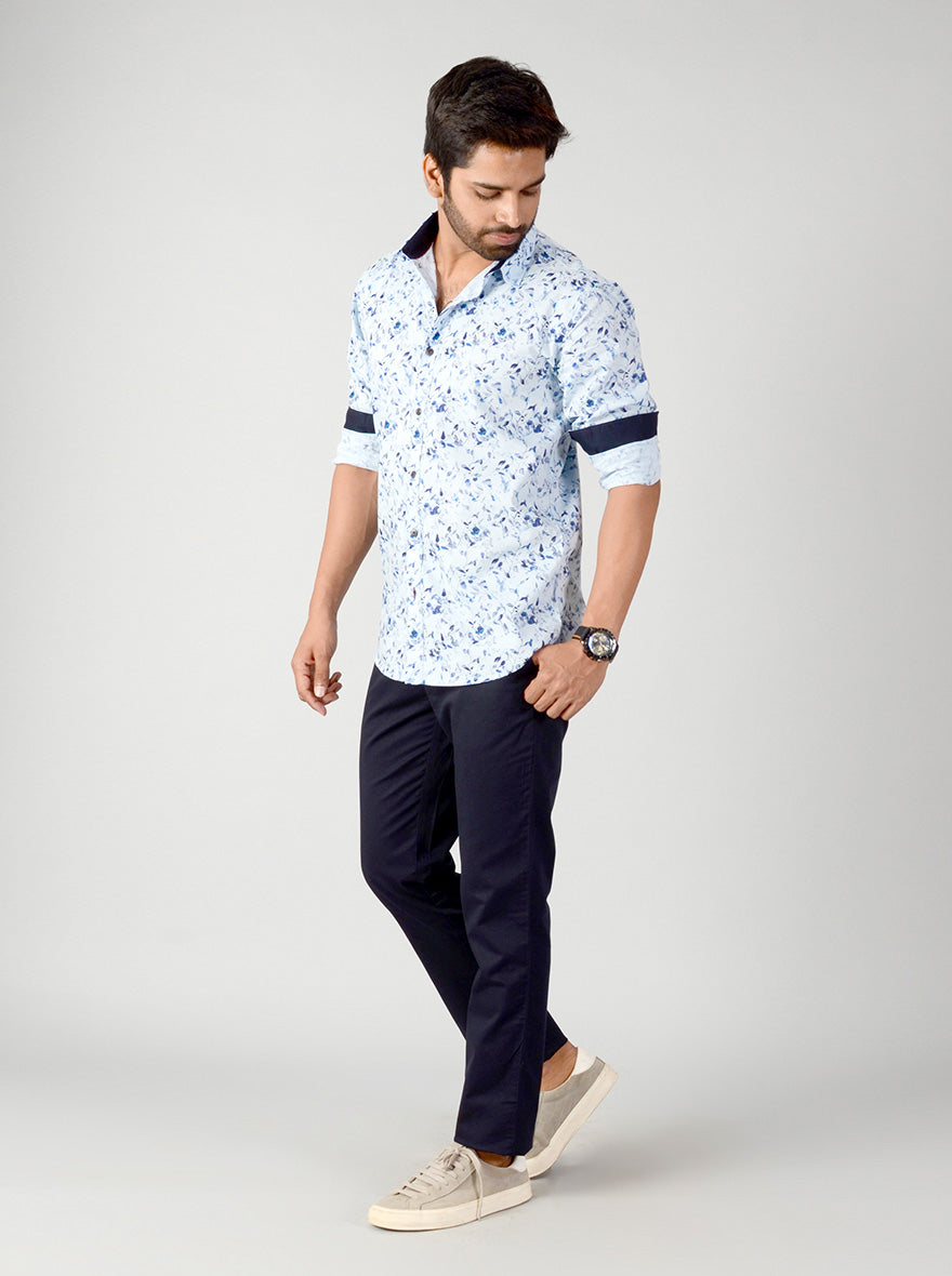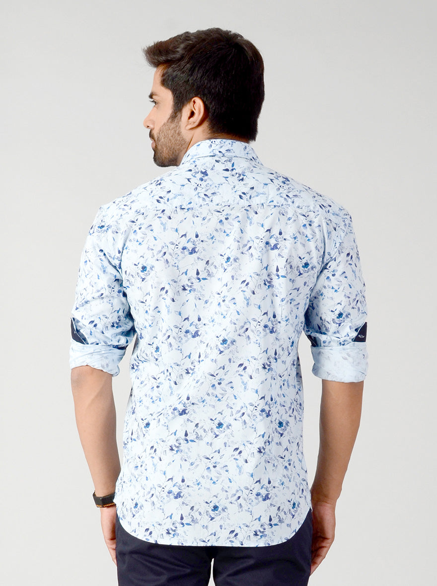 Dream Blue Printed Slim Fit Casual Shirt | Greenfibre