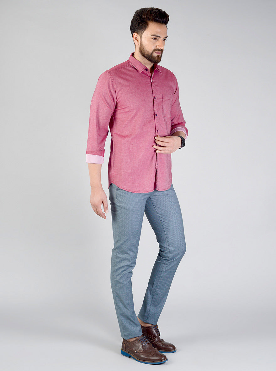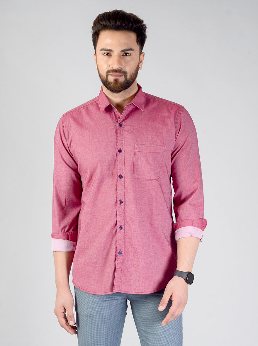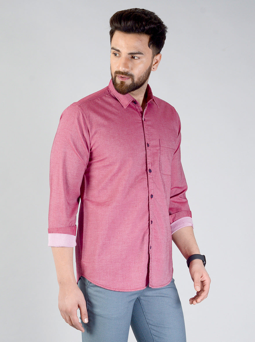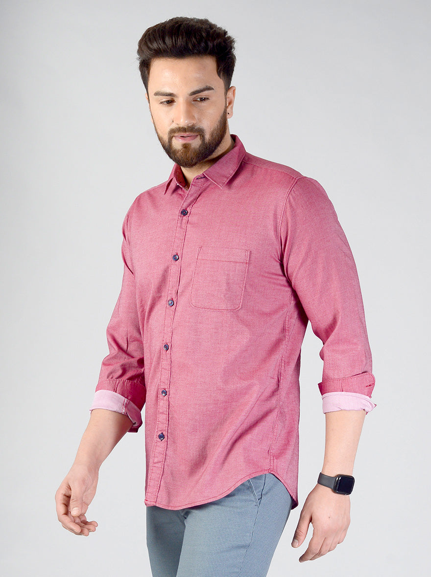Earthy Pink Solid Slim Fit Casual Shirt | JadeBlue