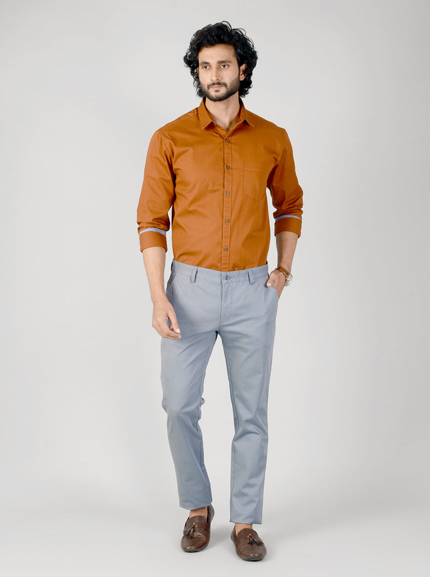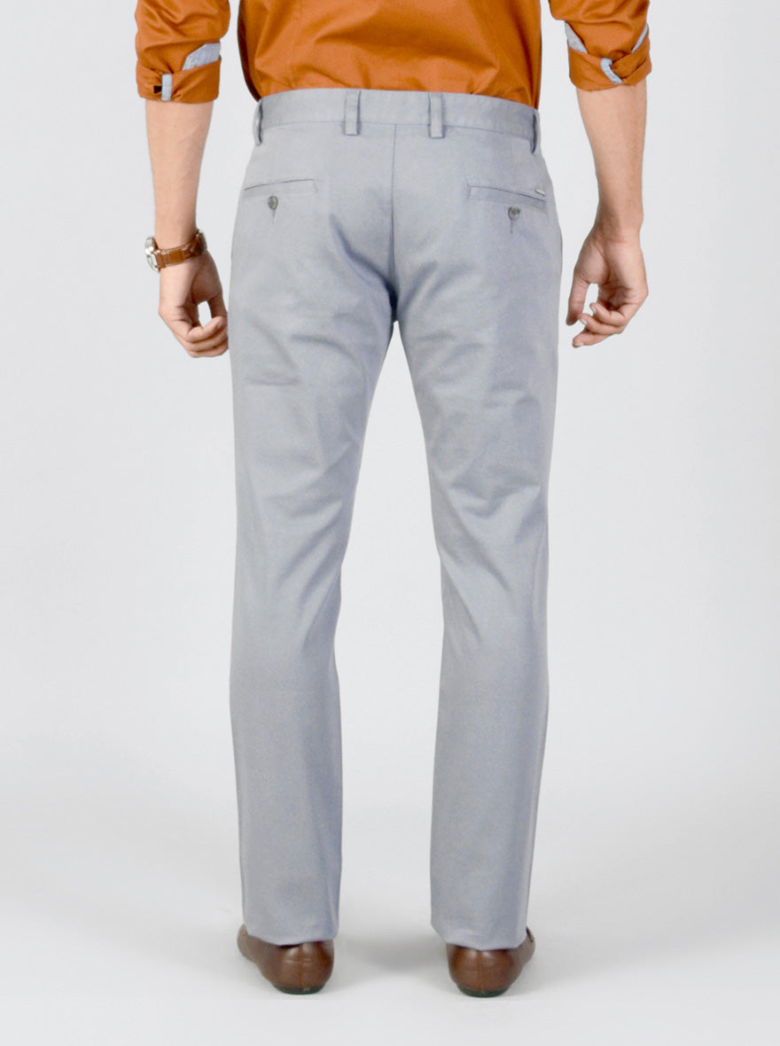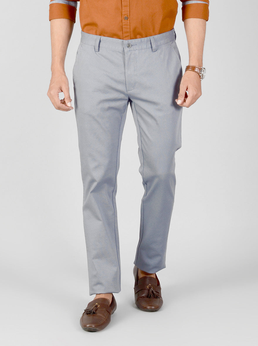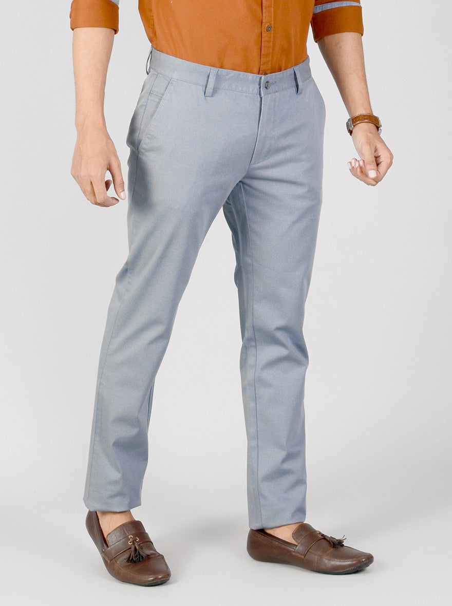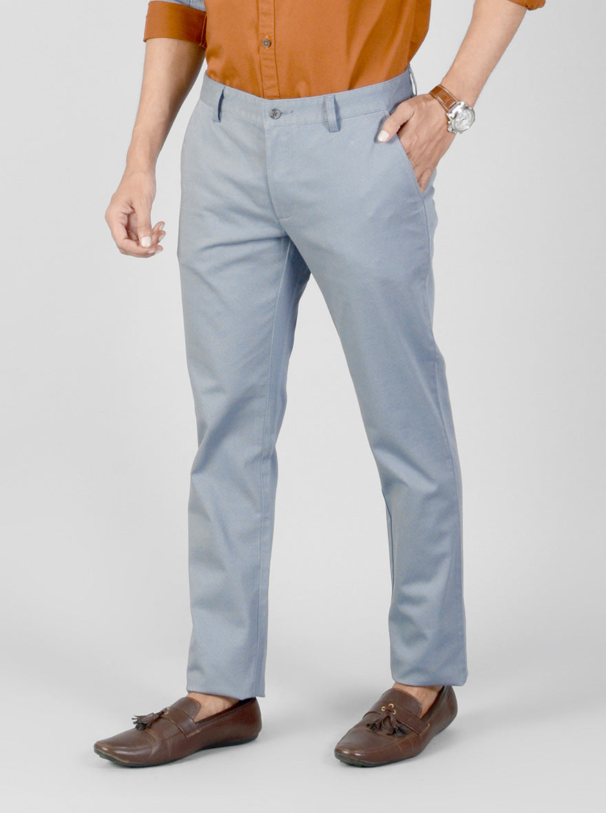 Details: Look stylish and relaxed in a snap by dressing up in this faded blue casual trousers. Made to perfection from cotton lycra fabric, this pair of slim fit trousers features belt loops, zip fly, single button closure and 4 functional pockets.