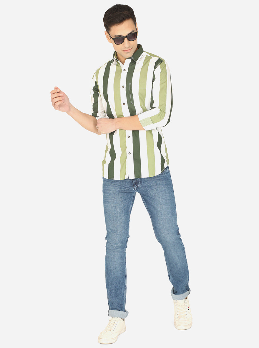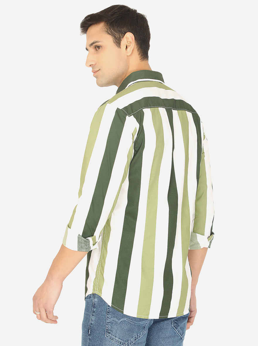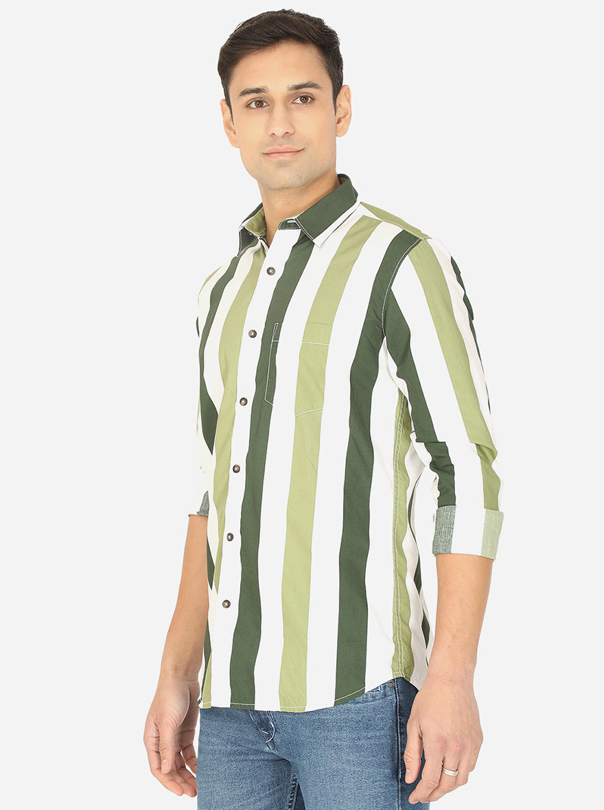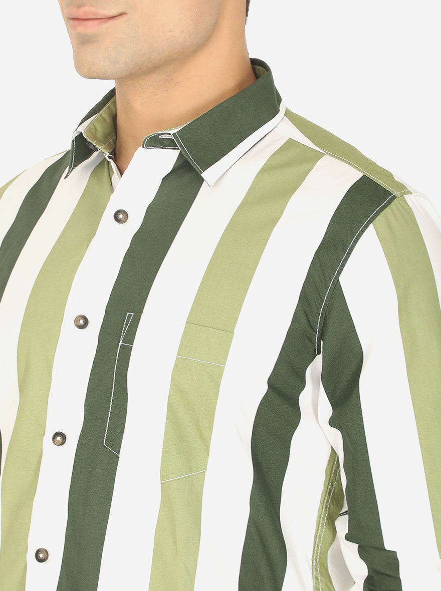 Forest Green & White Striped Slim Fit Semi Casual Shirt | JadeBlue