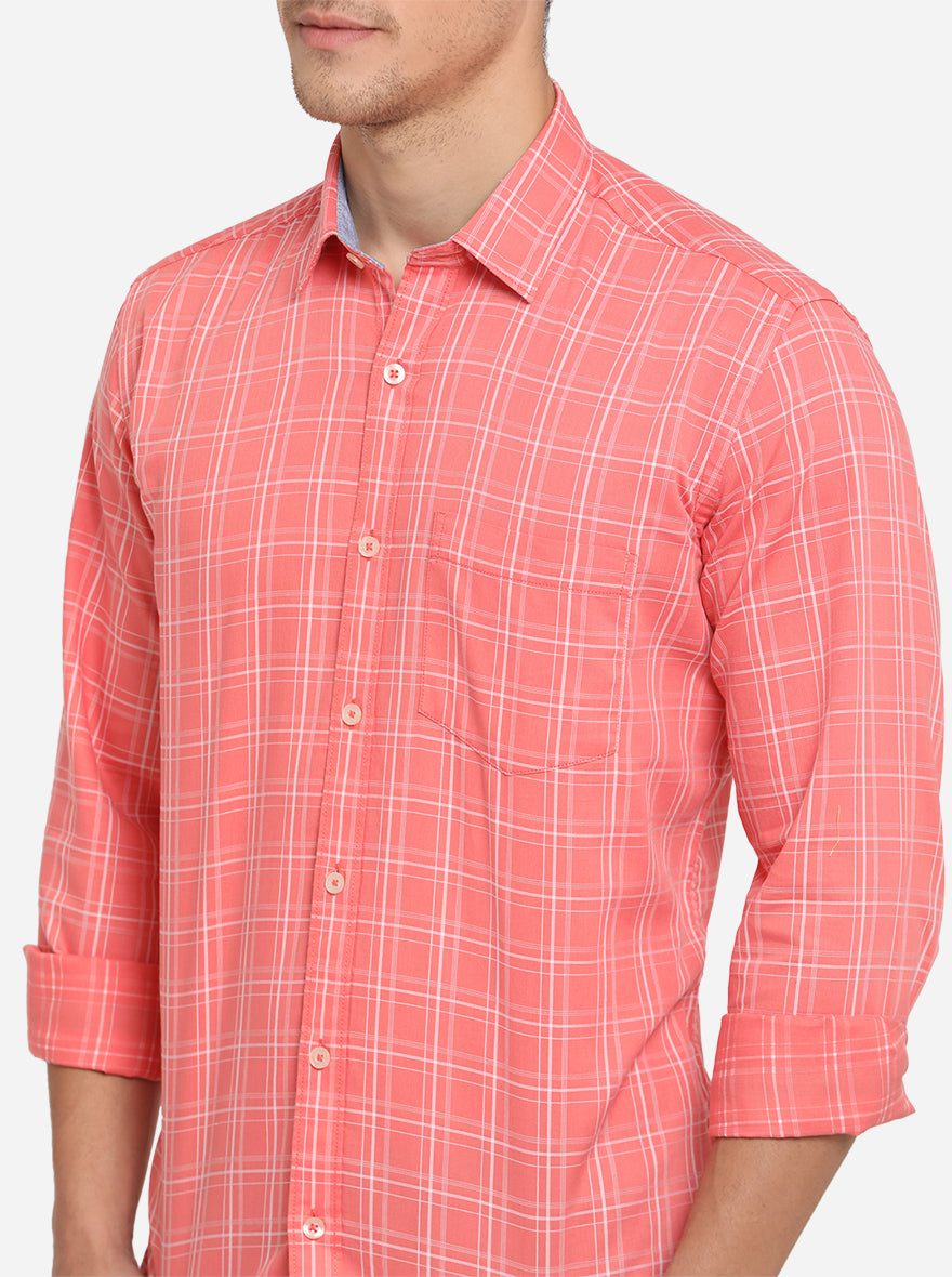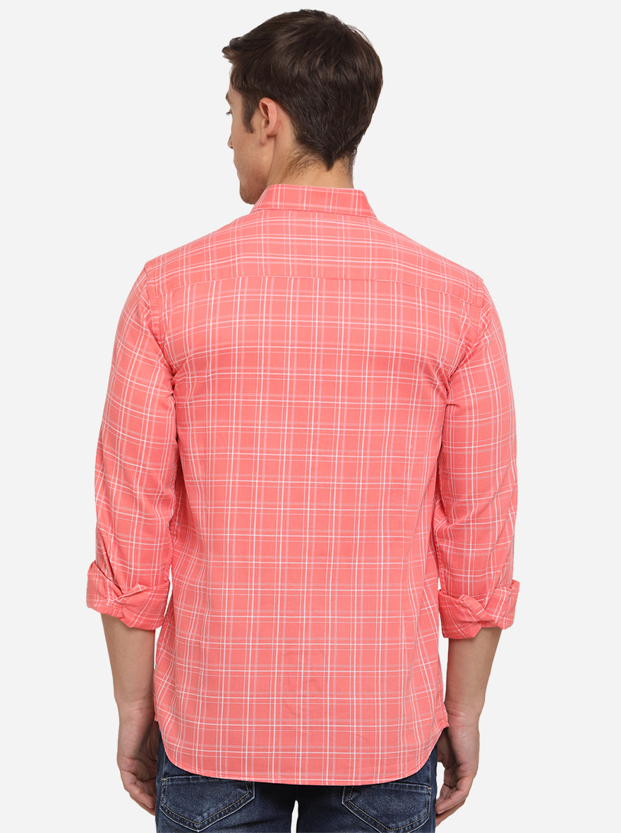 Georgia Peach Checked Slim Fit Semi Casual Shirt | JadeBlue