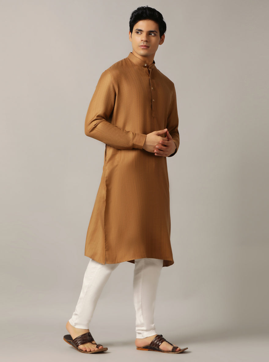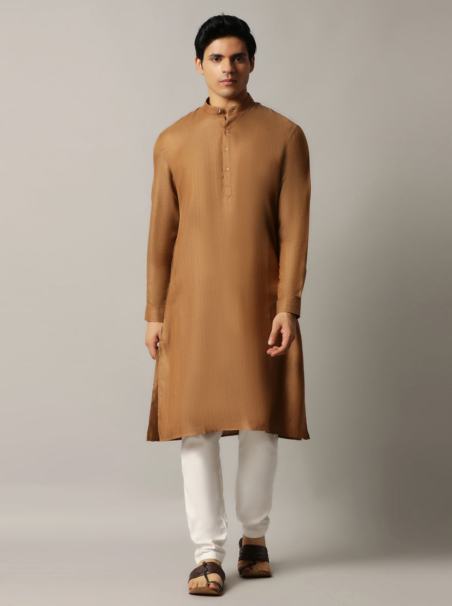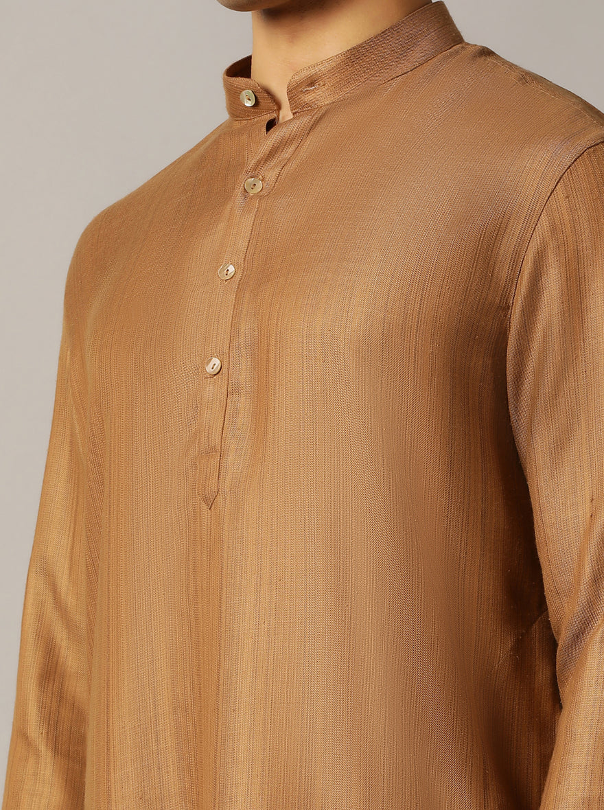 Golden Solid Regular Fit Modi Kurta | JadeBlue
