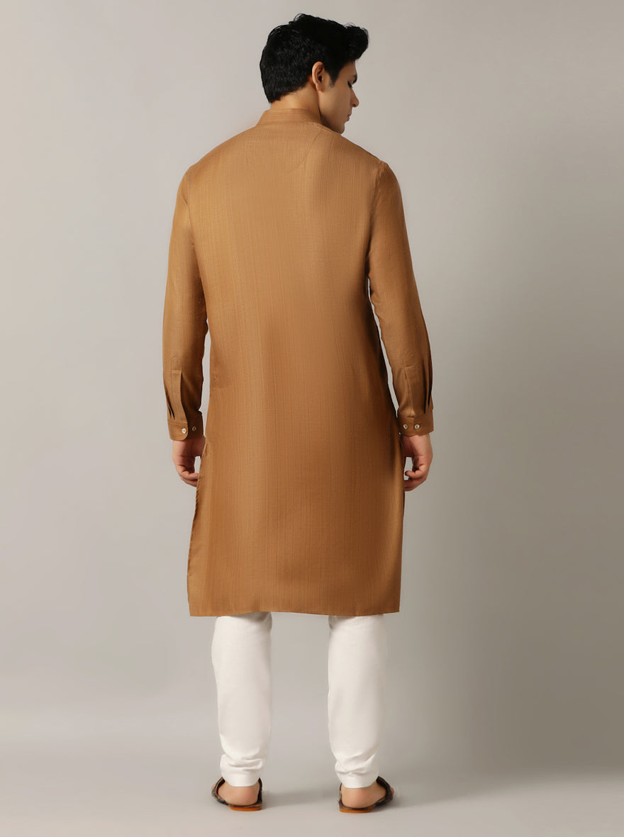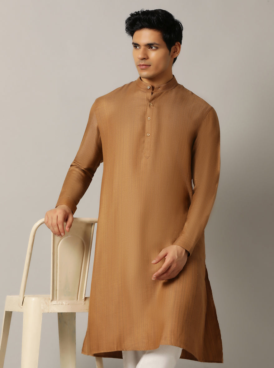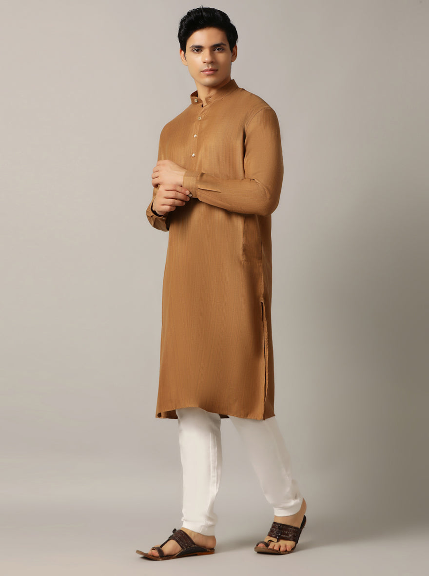 Golden Solid Regular Fit Modi Kurta | JadeBlue