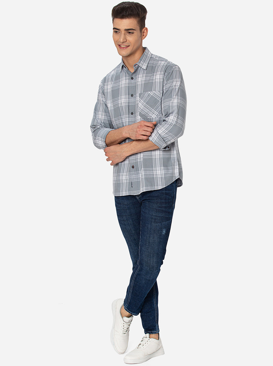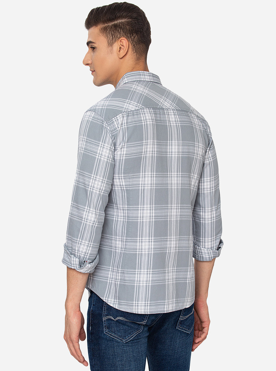 Gray & White Checked Slim Fit Semi Casual Shirt | Greenfibre