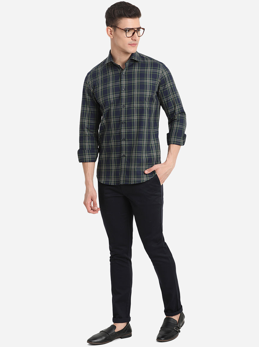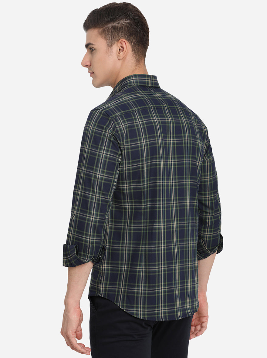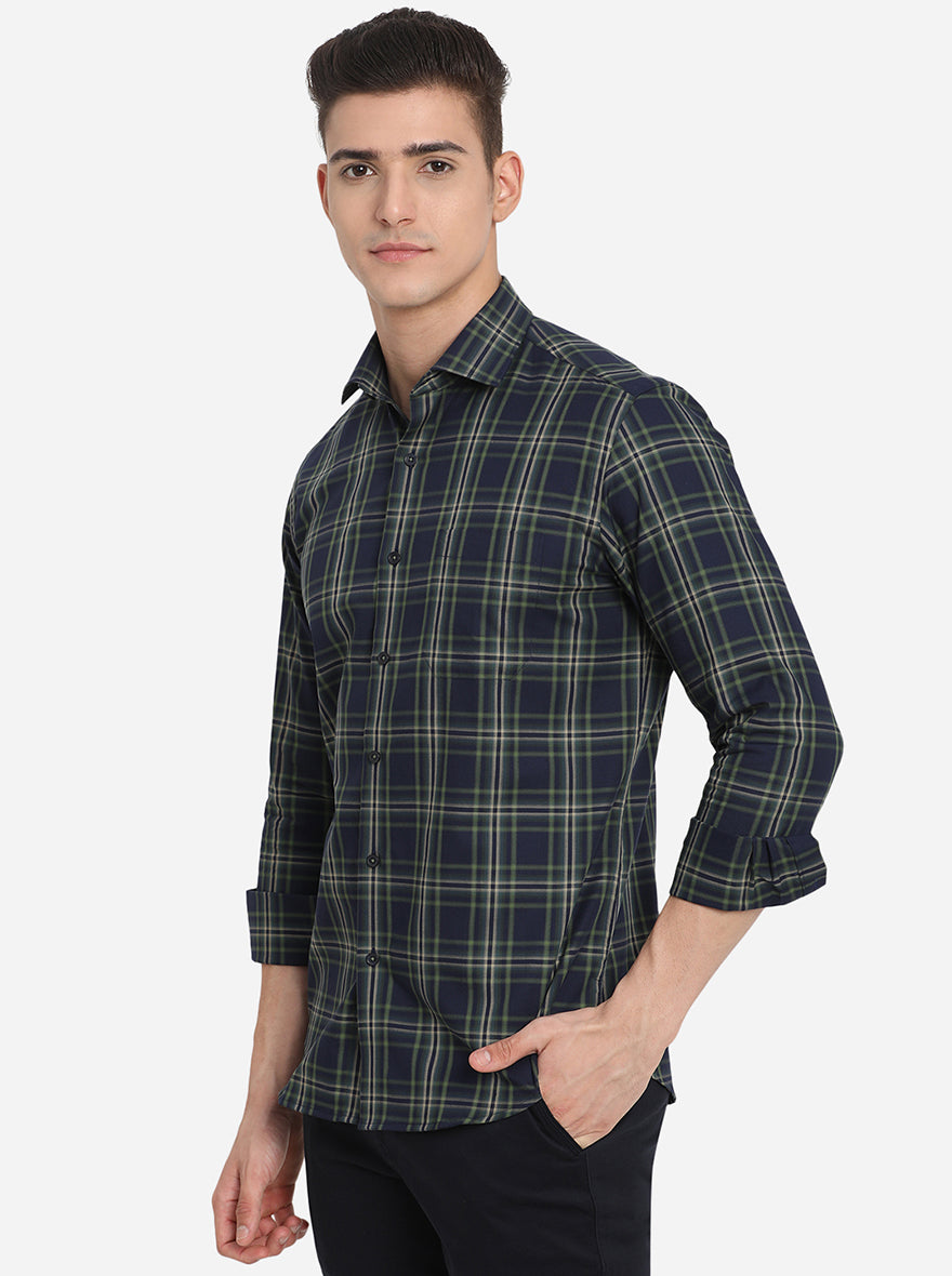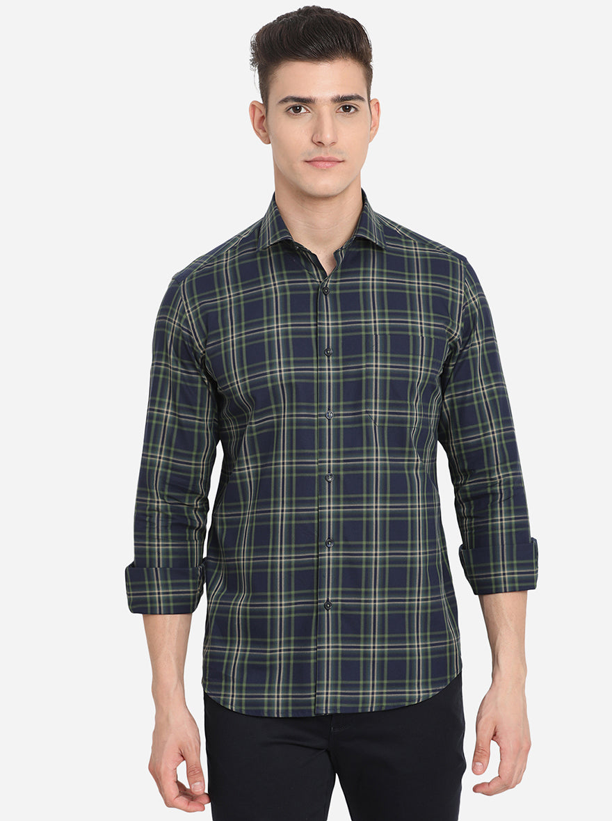 Green & Blue Checked Regular Fit Formal Shirt | JadeBlue