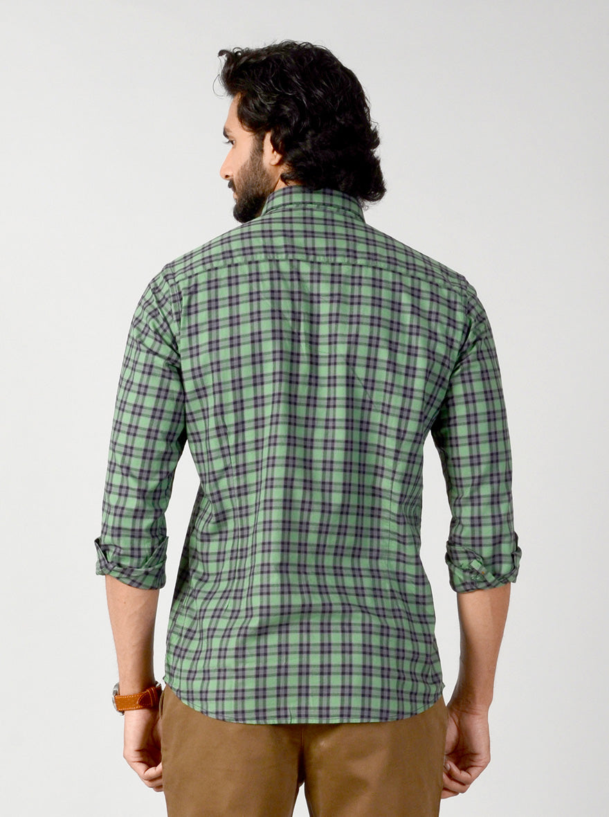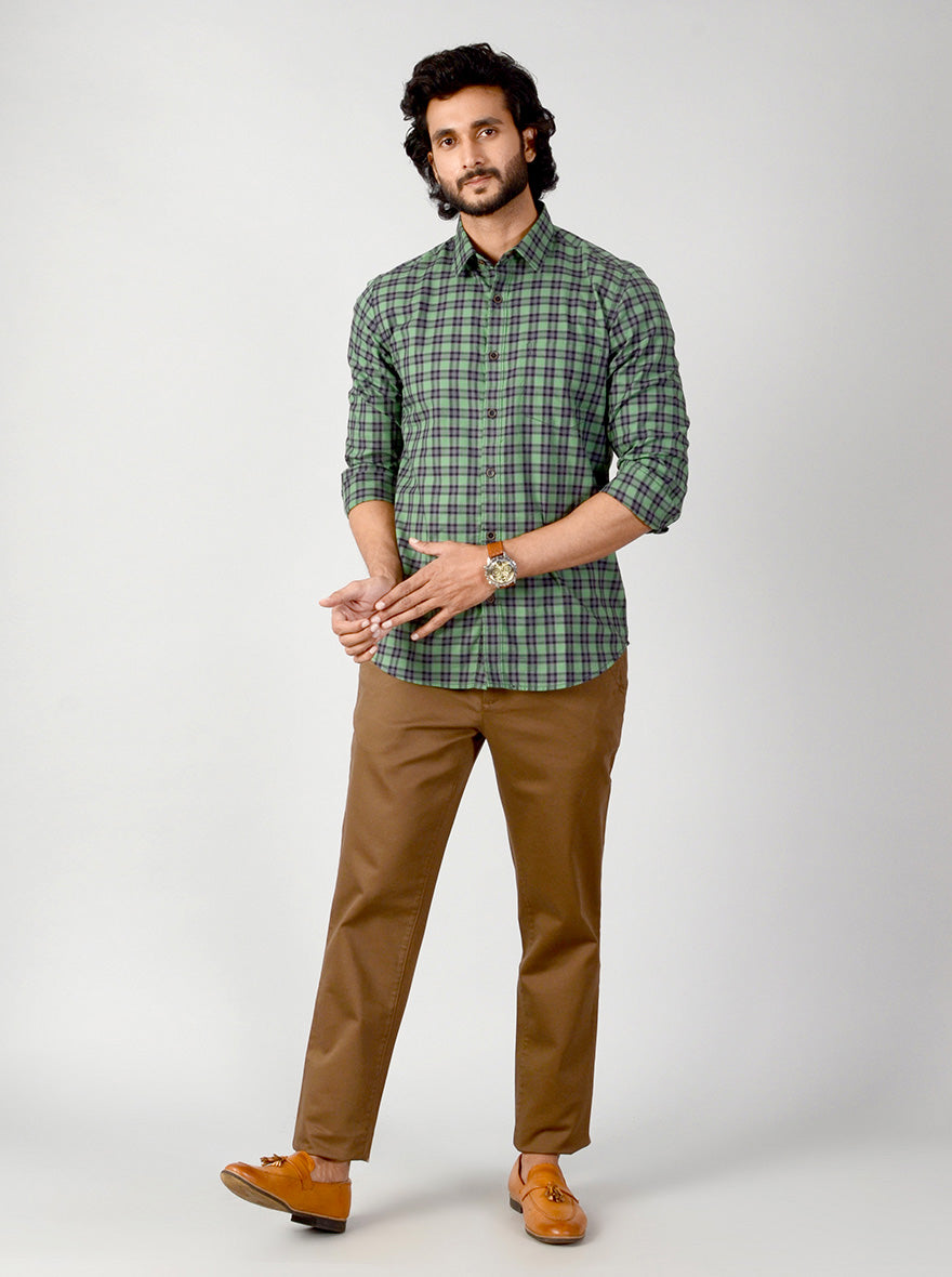 Green & Brown Checked Slim Fit Casual Shirt | JadeBlue