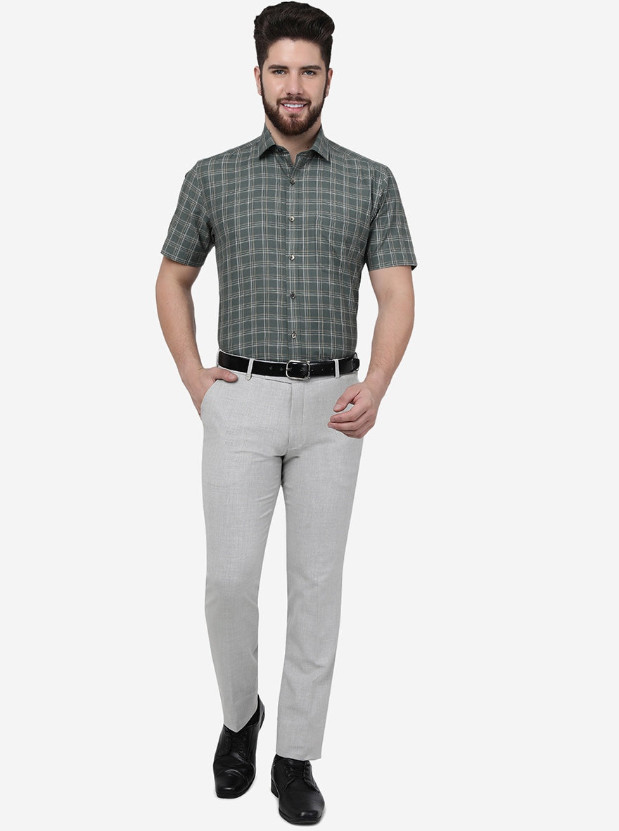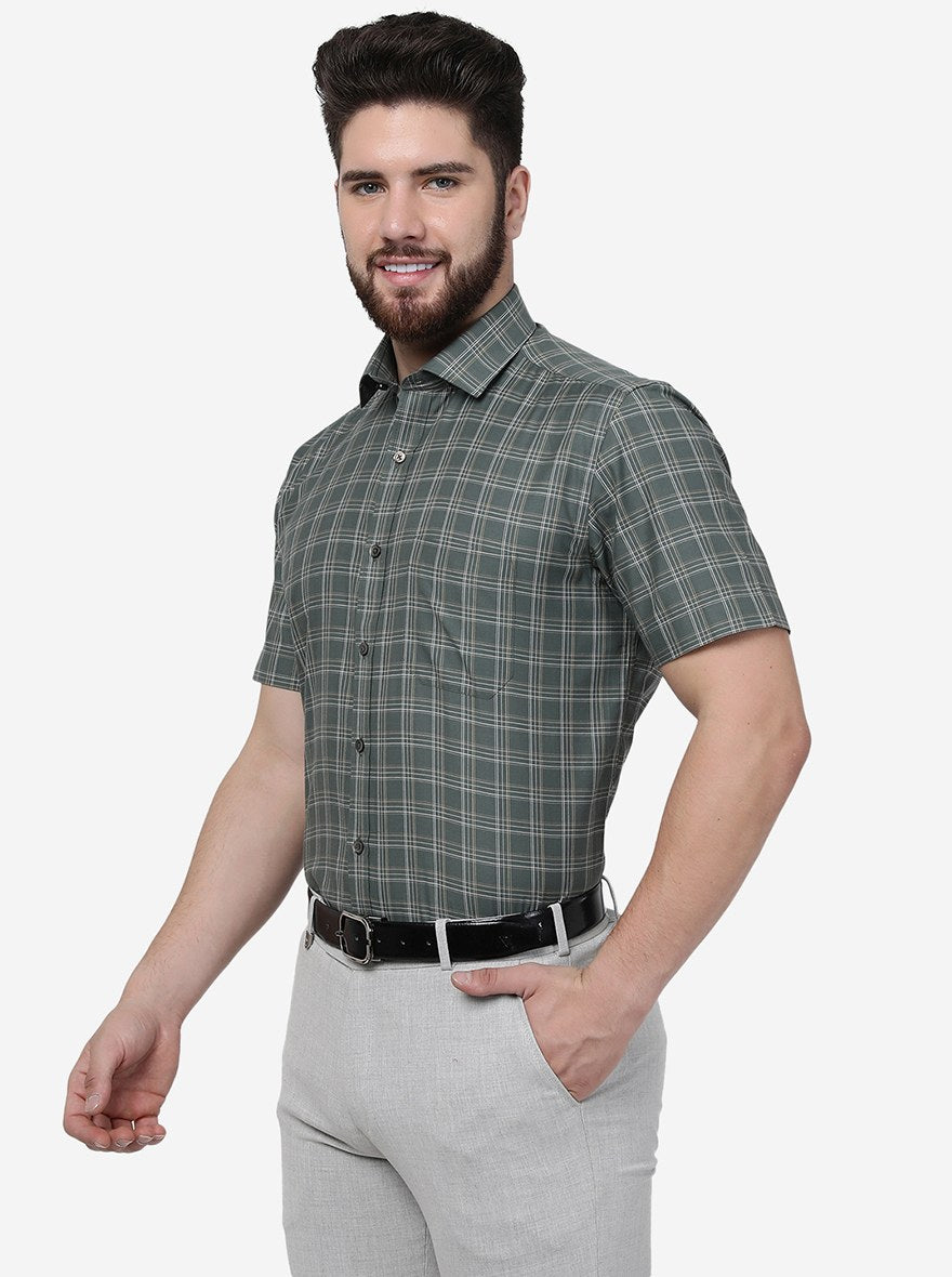 Green Checked Regular Fit Formal Shirt | Greenfibre