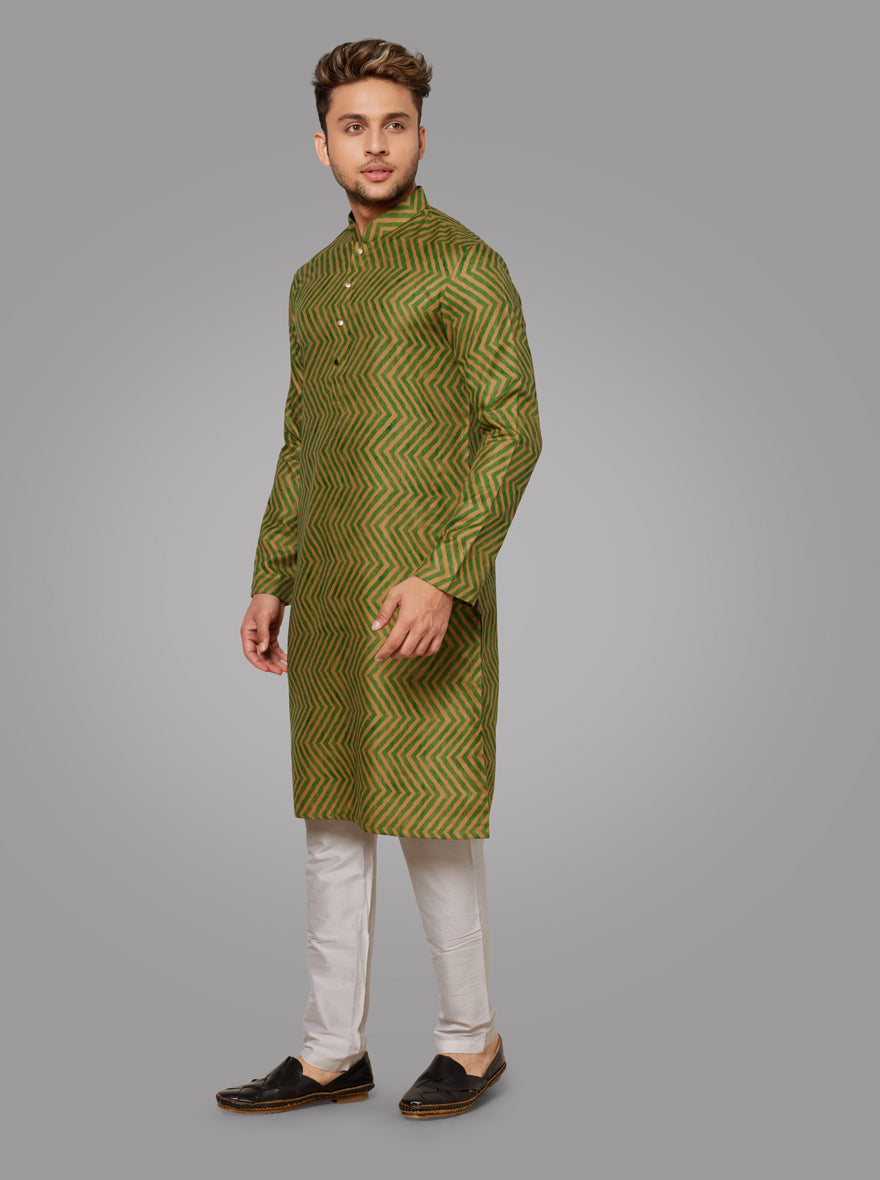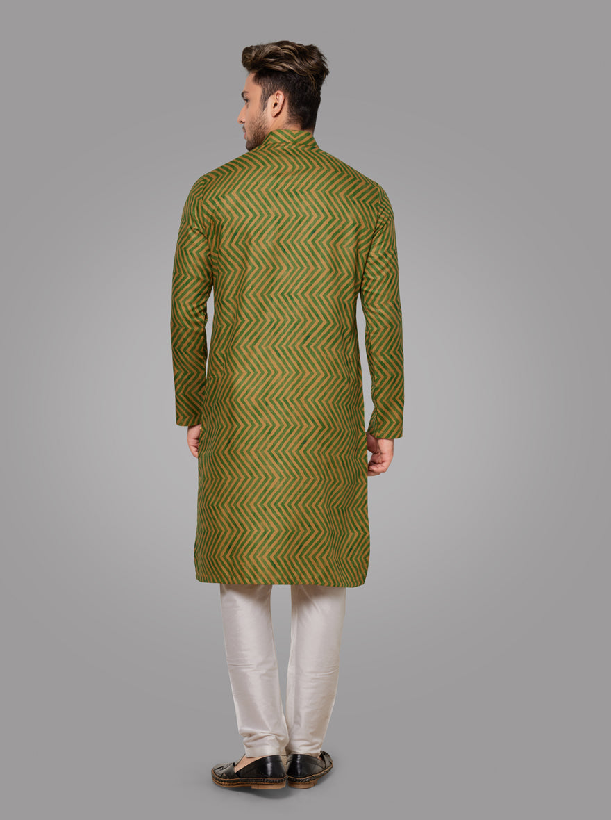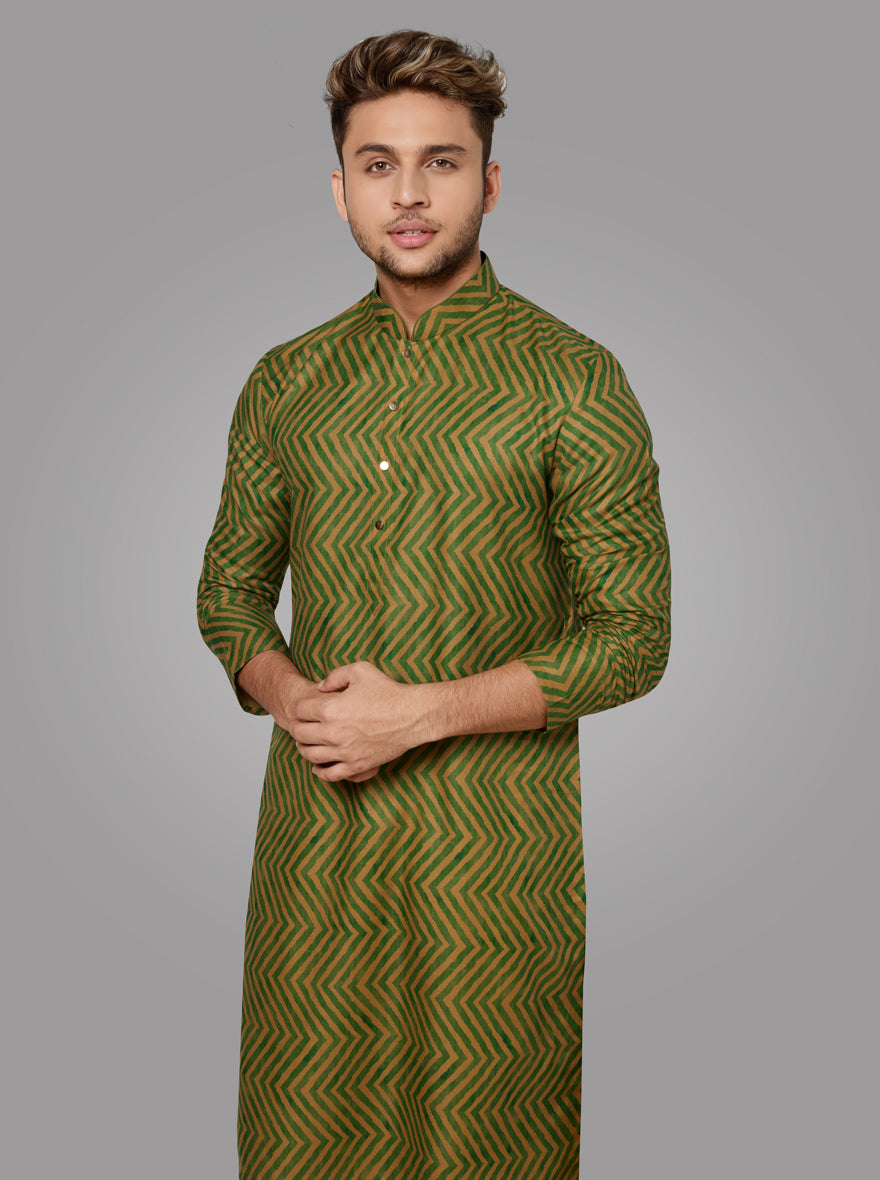 Details: This Green Kurta set from the latest collection from TULA is designed with intricate prints. Crafted with an excellent and soft feel Silk Blend fabric will provide an elegant and trendy look. Offers a Classic fit with Straight Cut Kurta which has been elevated with overall Print. Compliment it with aligarhi to finish the traditional look. Perfect For a festive occasion or pre-wedding functions.