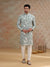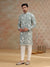 Details: Step into elegance with TULA's exquisitely crafted men's kurta pajama set, perfect for pre-wedding functions and festive occasions. Made from a premium silk blend fabric, this ensemble promises a luxurious experience with its smooth and comfortable feel. The kurta features intricate DORI embroidery and a distinctive printed pattern, adding a layer of sophistication to your traditional wear. Designed in a classic straight cut with a regular fit, it complements all body types effortlessly. The modern mandarin collar enhances the kurta's appeal, offering a stylish yet traditional vibe. Whether you're attending a pre-wedding event or a festive celebration, this kurta pajama set from TULA ensures you make a lasting impression. Embrace timeless elegance and impeccable style with TULA's green kurta pajama, an essential addition to any discerning wardrobe.