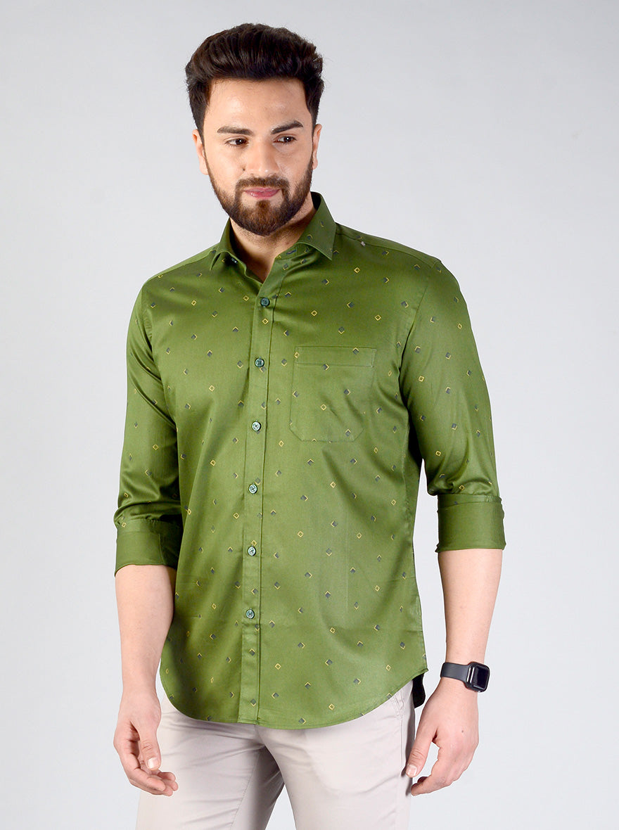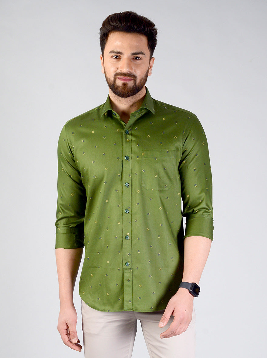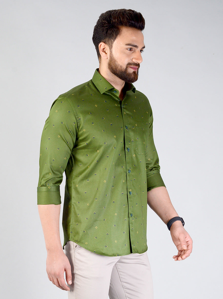 Green Printed Slim Fit Formal Shirt | JadeBlue