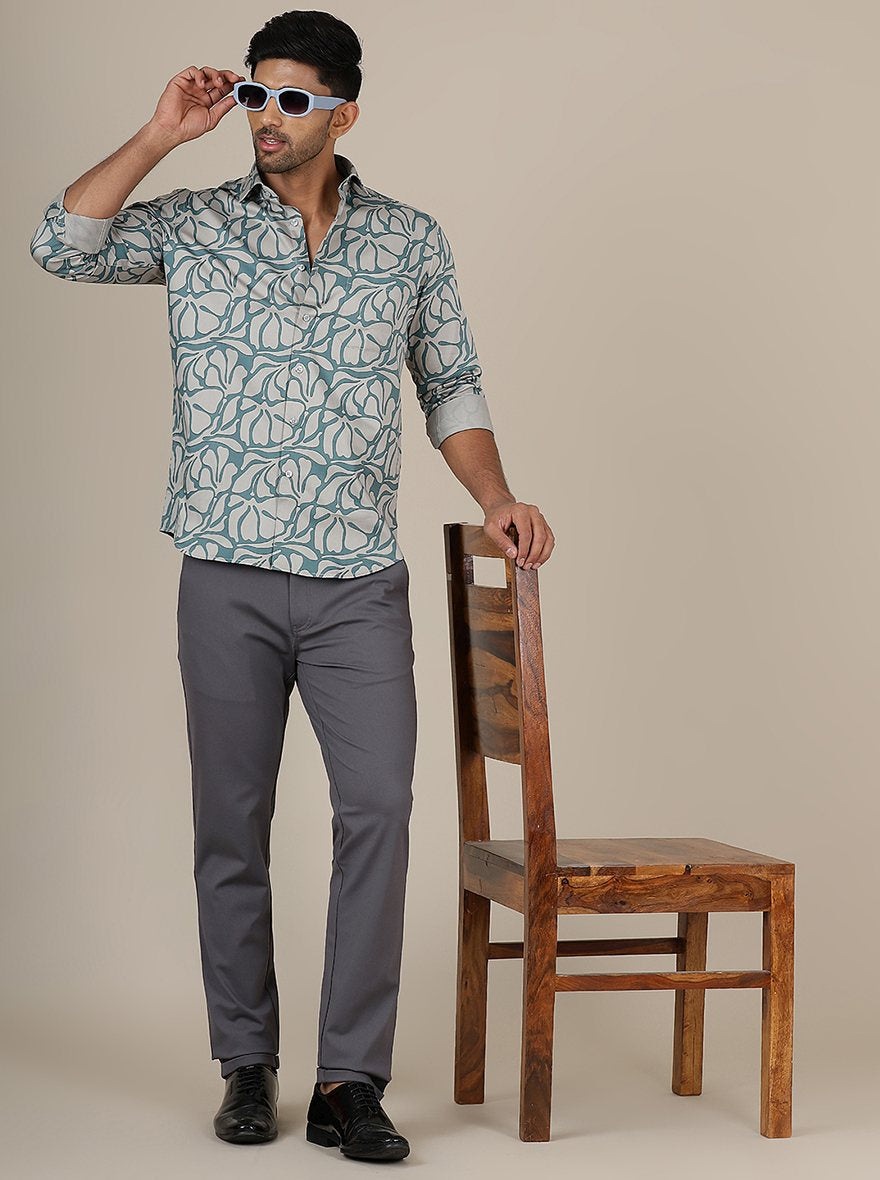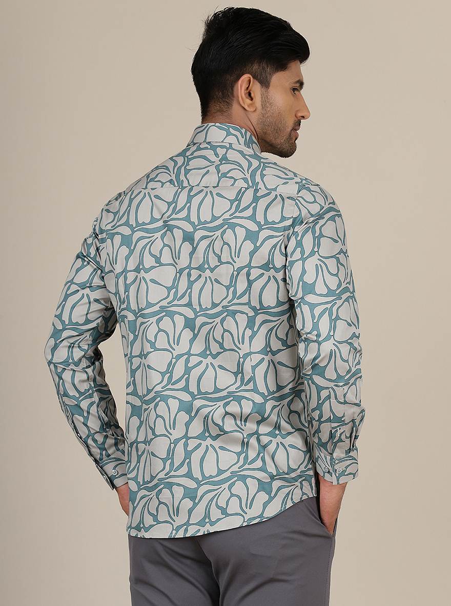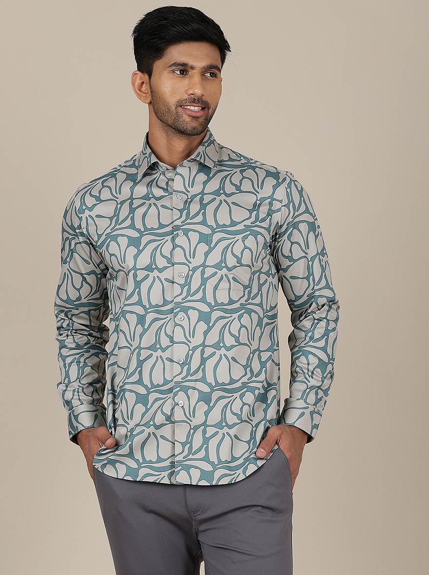 Green Printed Slim Fit Party Wear Shirt | Greenfibre