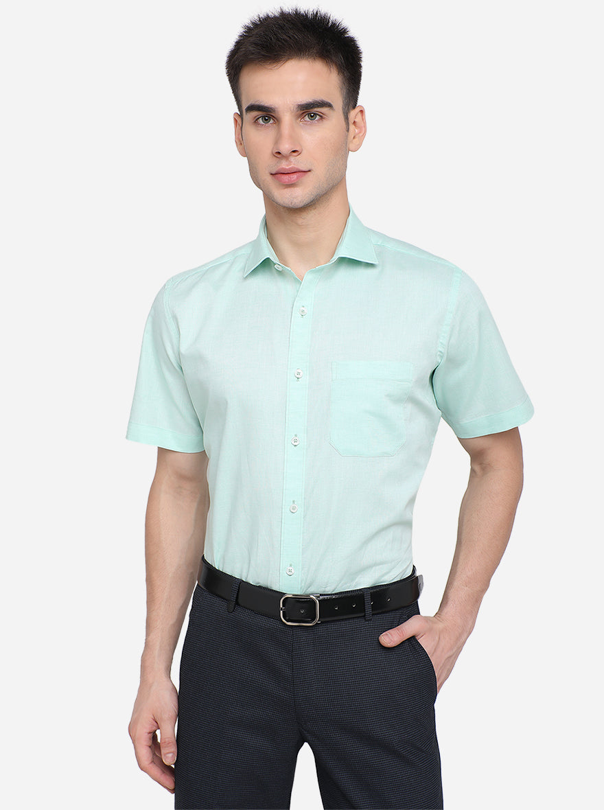 Green Solid Regular Fit Formal Shirt | JadeBlue