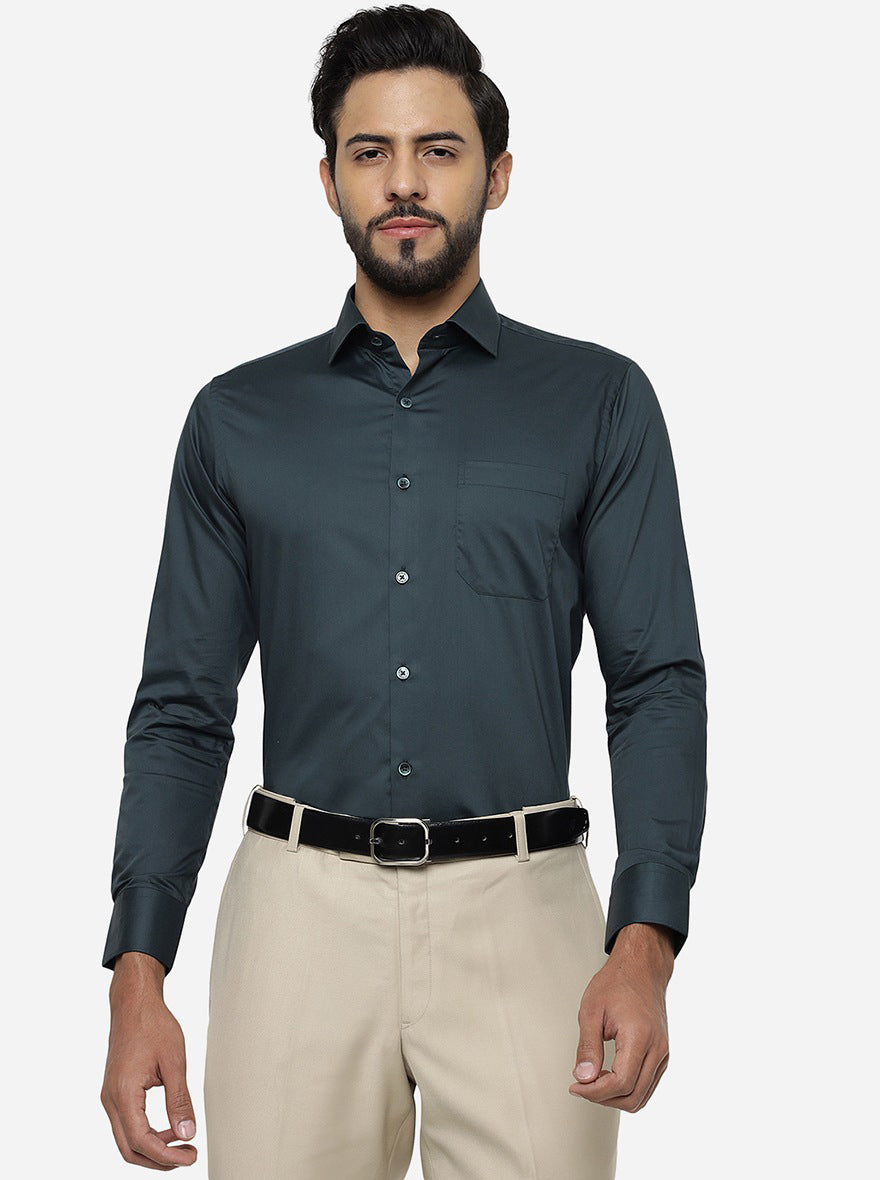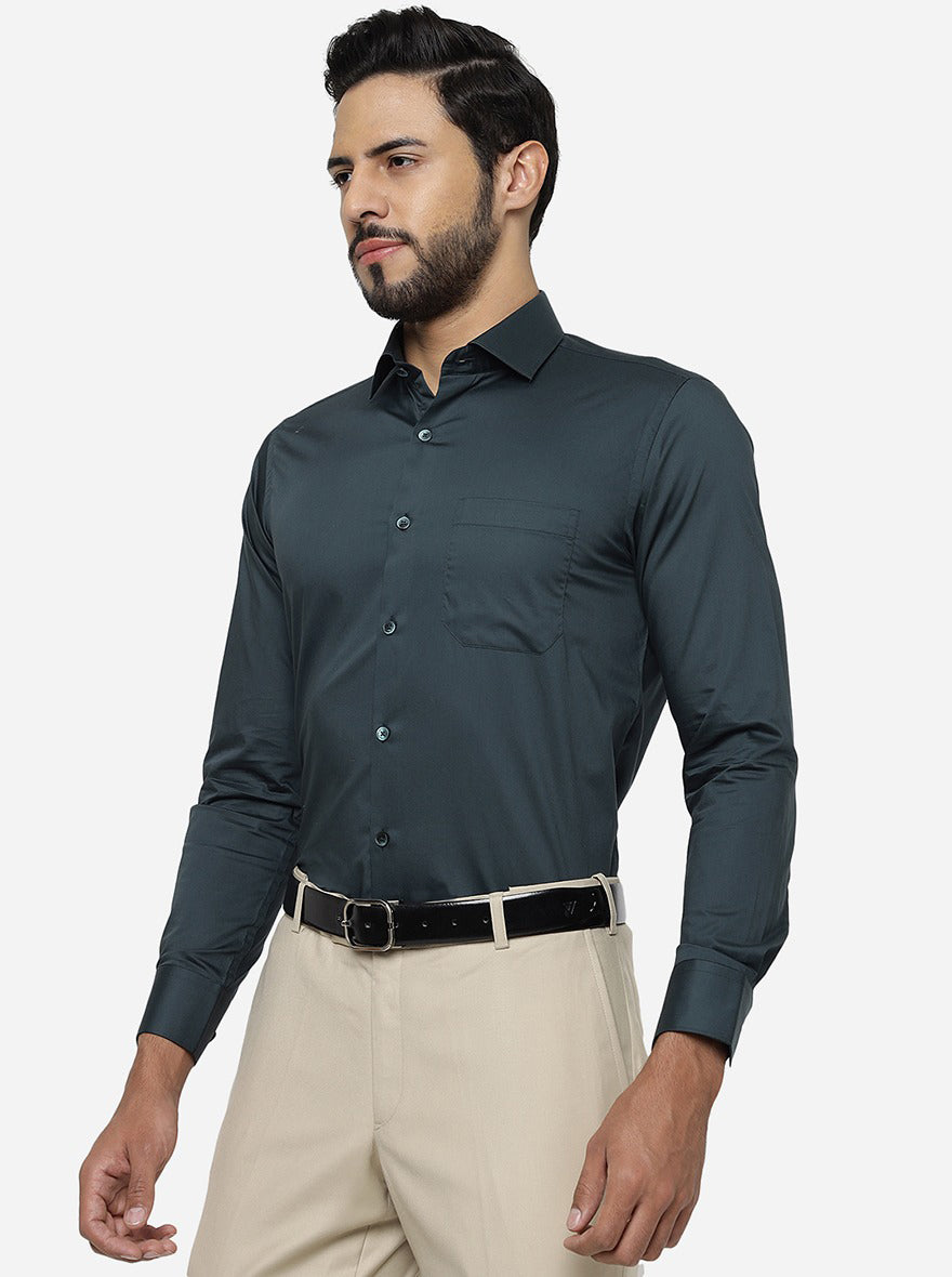 Green Solid Slim Fit Formal Shirt | JadeBlue