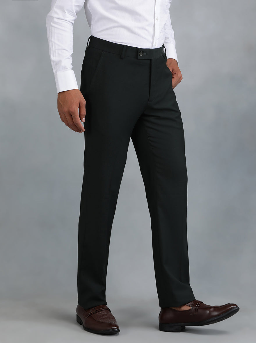 Green Solid Slim Fit Formal Trouser | Greenfibre