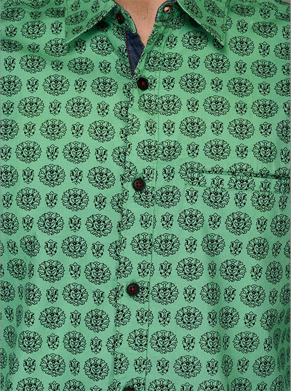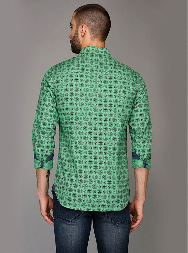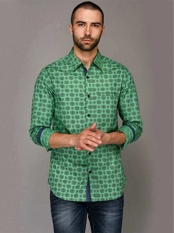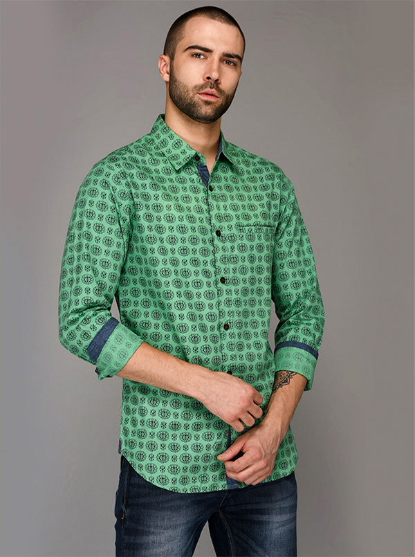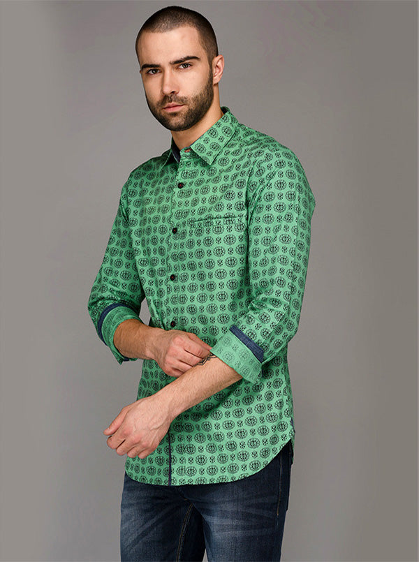 Greenfibre Light Green Printed Slim Fit Casual Shirt