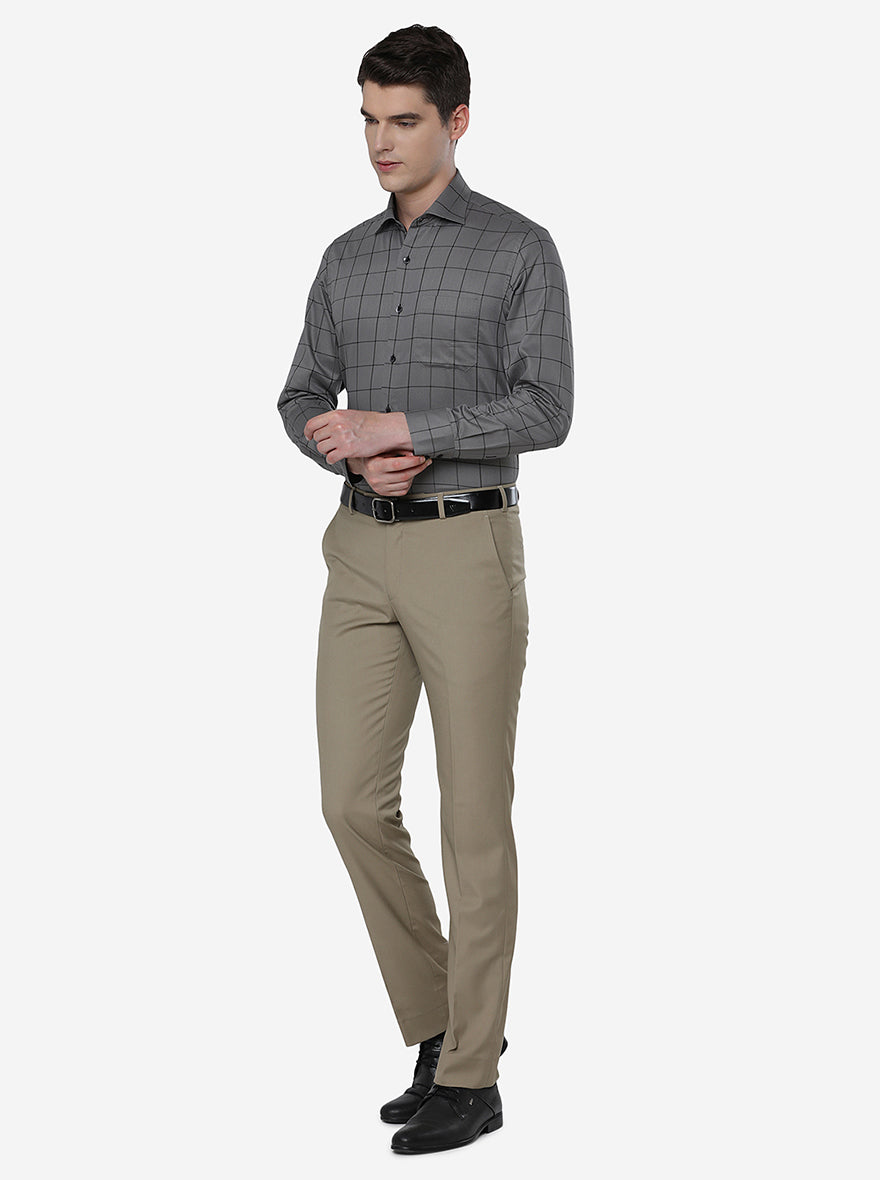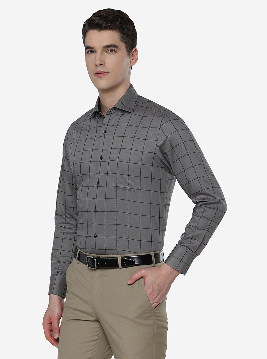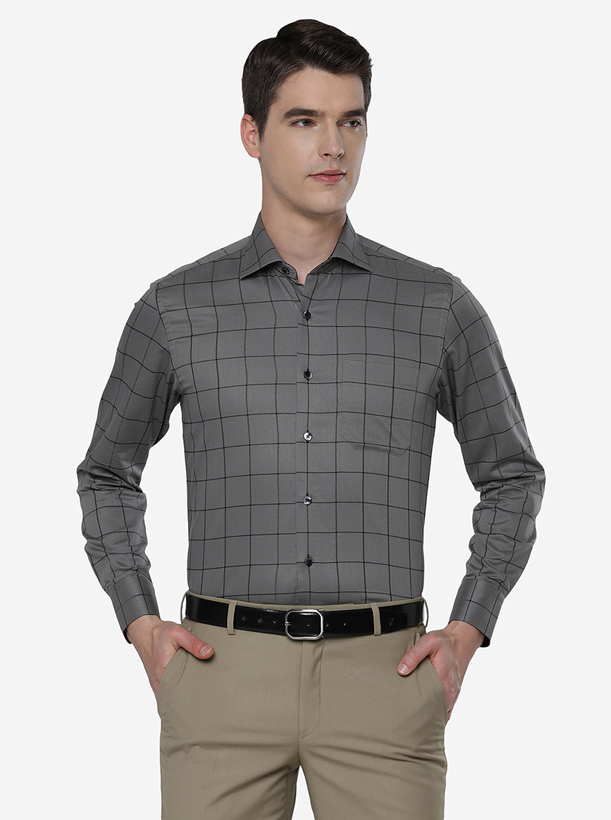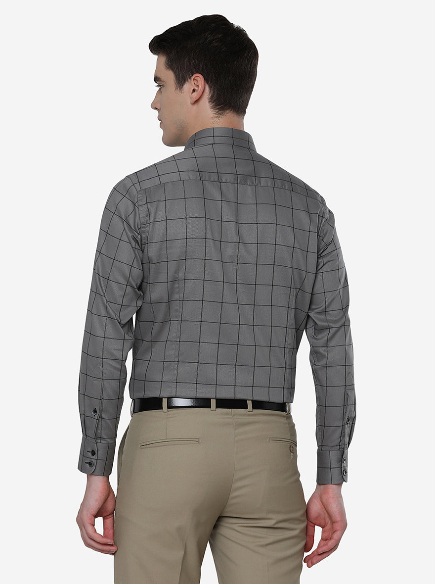 Grey & Black Checked Slim Fit Formal Shirt | Metal
