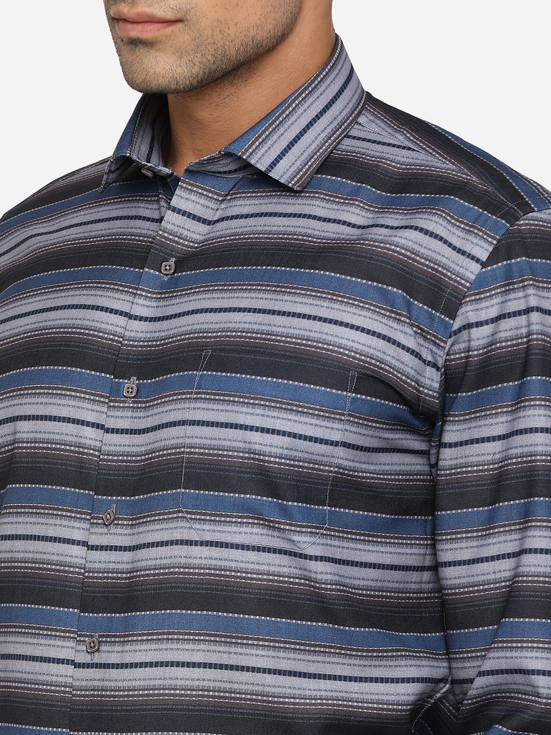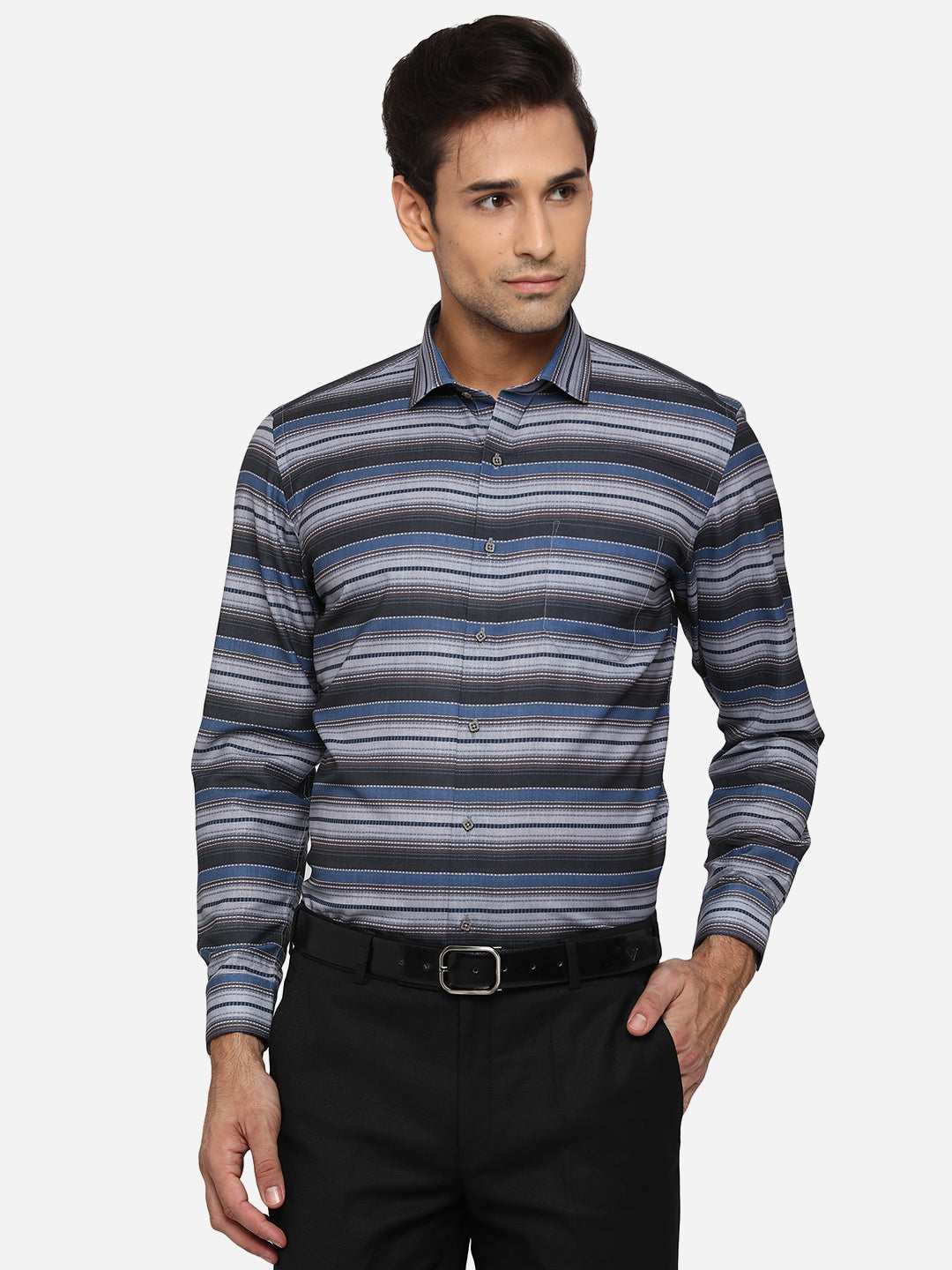 Details: Create a style statement wearing this gorgoeys Grey and Blue Shirt from the latest collection of Greenfibre. It features a shirt collar, full-sleeves and offers a slim-fit. It is adorned with a printed pattern, which makes it a fashionable pick. Perfect for party wear. Crafted with Pure Cotton, it allows a great comfort and a great breathability during long hours. Team it with a well-fitted Black trouser and Tan oxford shoes to complete the look like a pro.