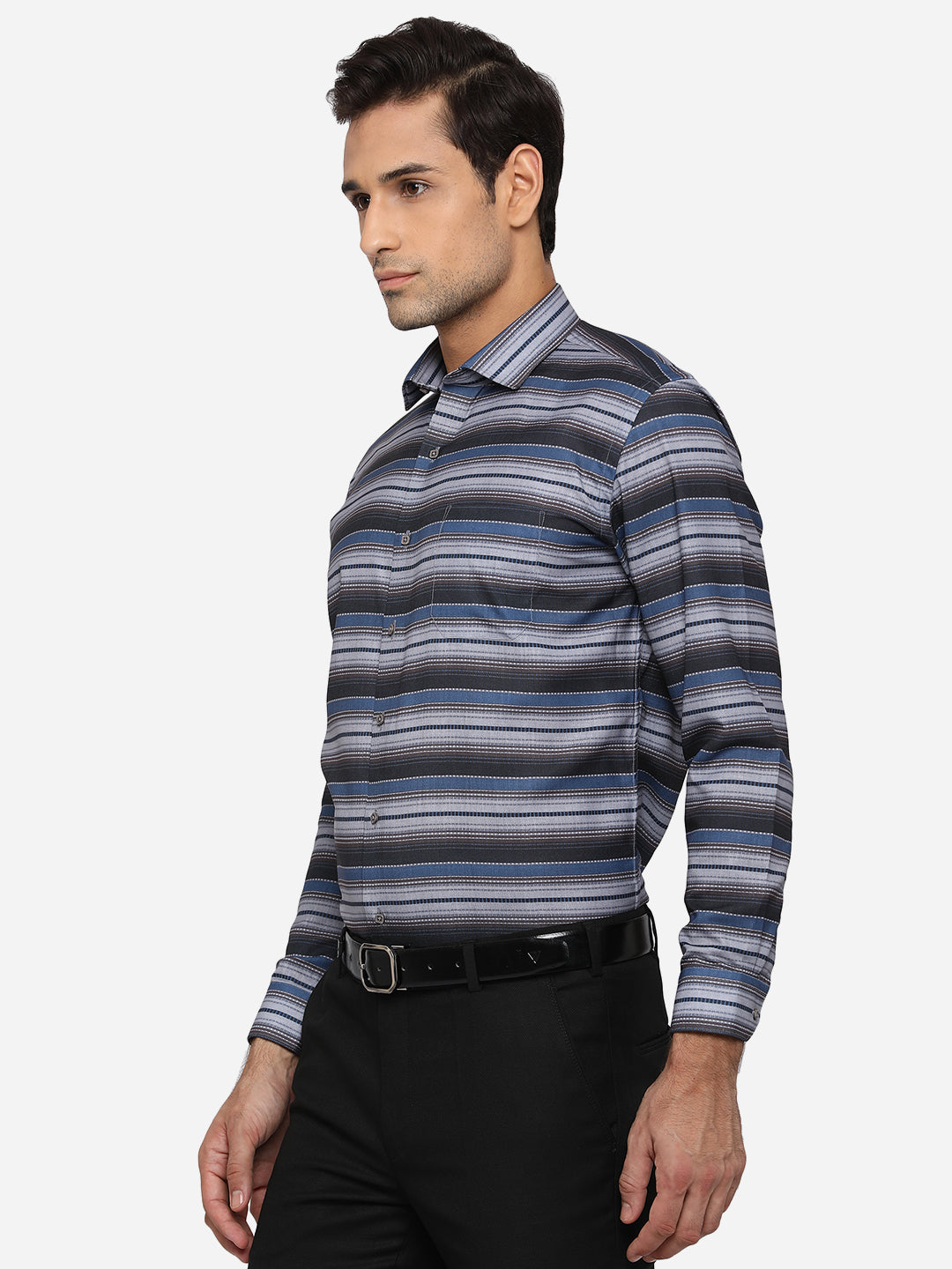 Grey & Blue Printed Slim Fit Party Wear Shirt | Greenfibre