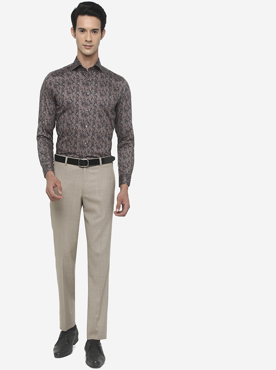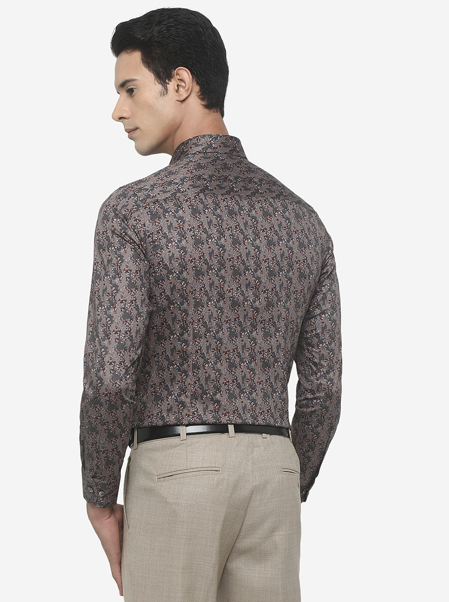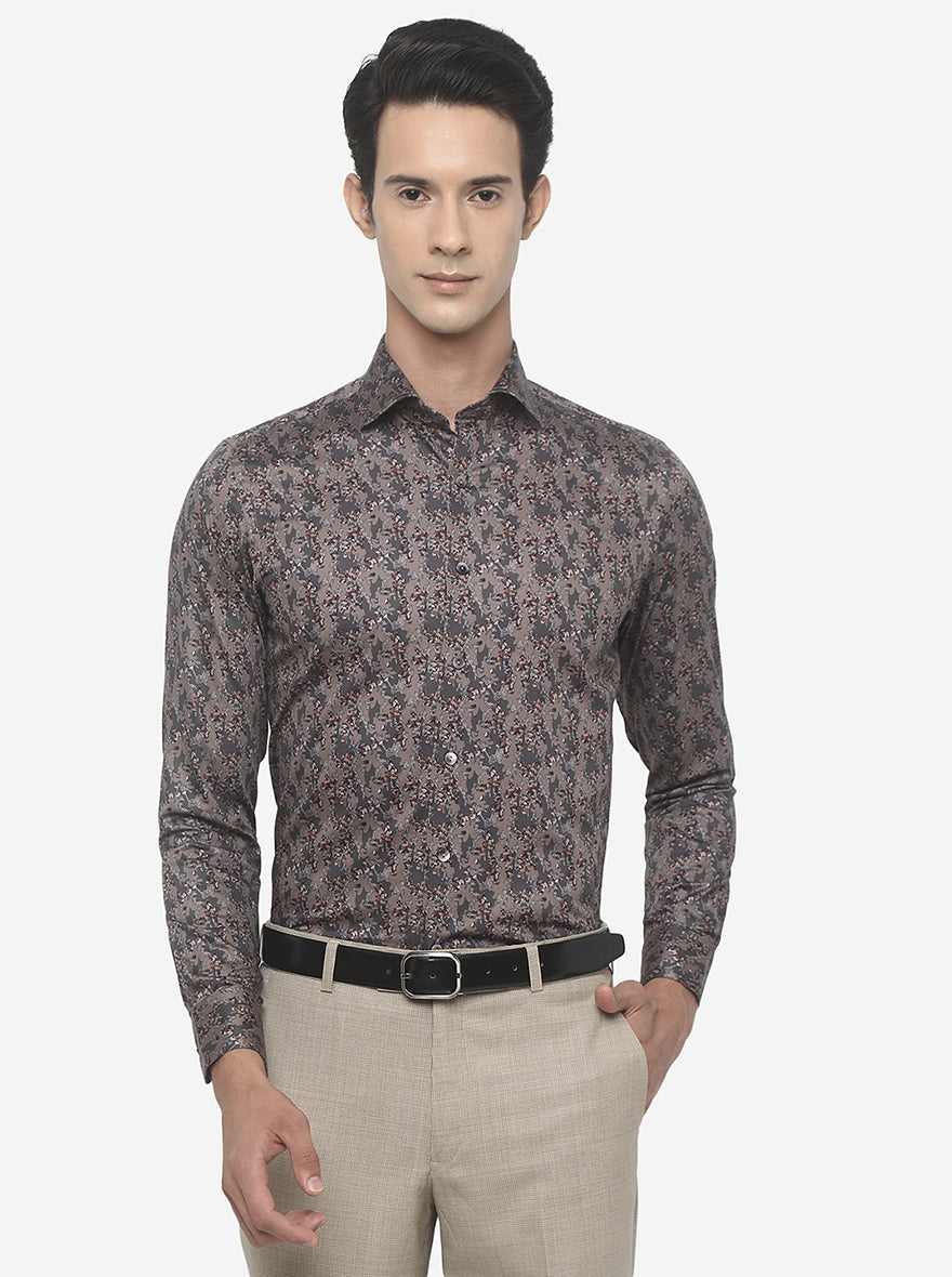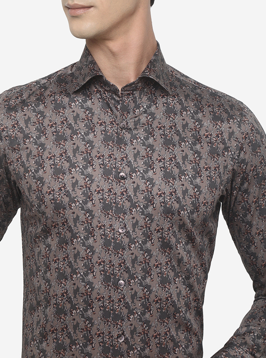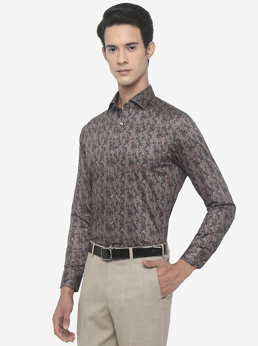 Grey & Brown Printed Slim Fit Party Wear Shirt | Wyre