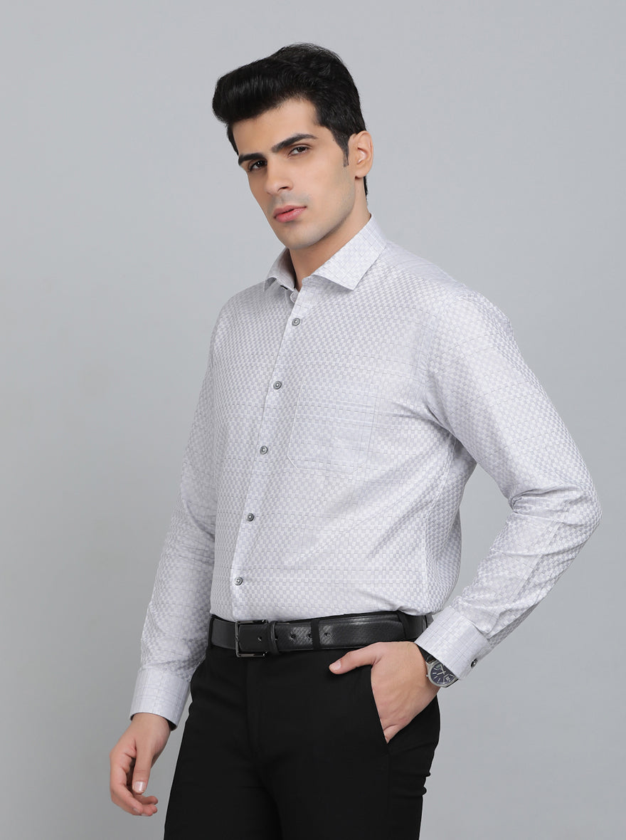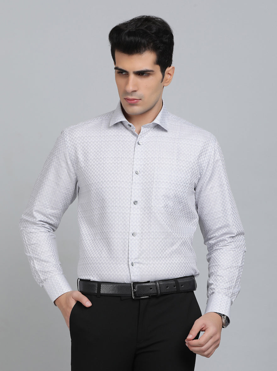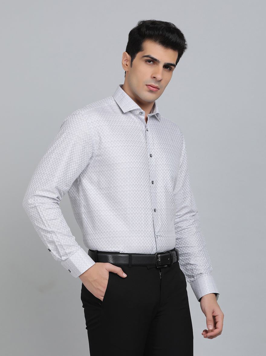Grey Checked Regular Fit Formal Shirt | Greenfibre