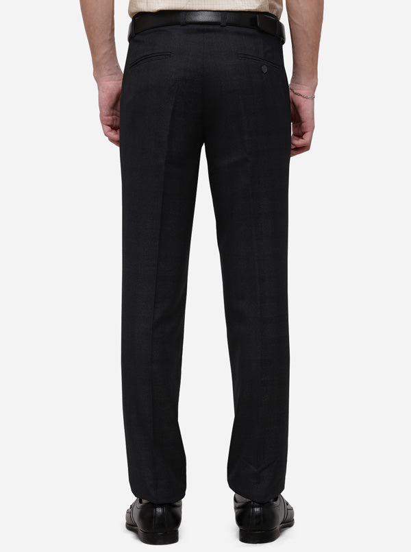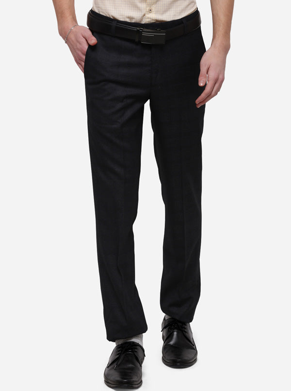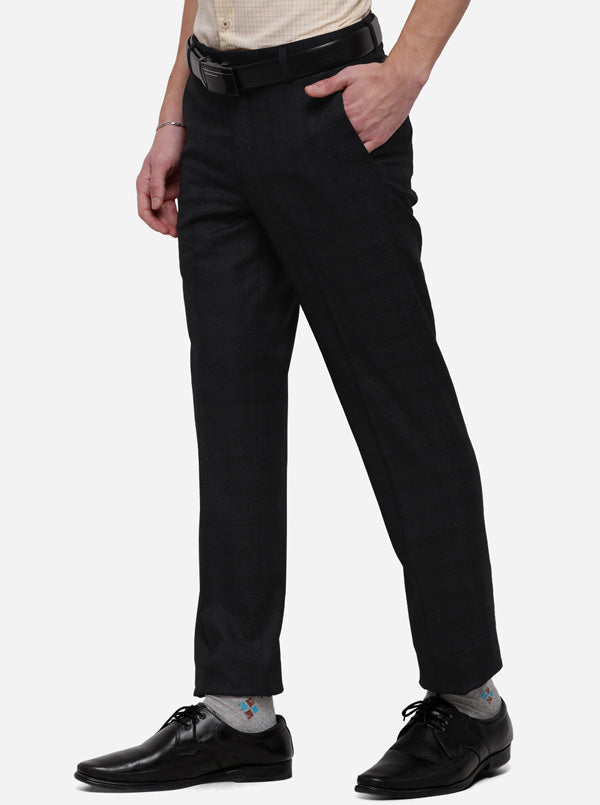 Look effortlessly stylish when you step out wearing these Checks dark grey & black formal trousers. Made from Poly wool fabric, these slim men's trousers boasts of slim design and has all the essential features.