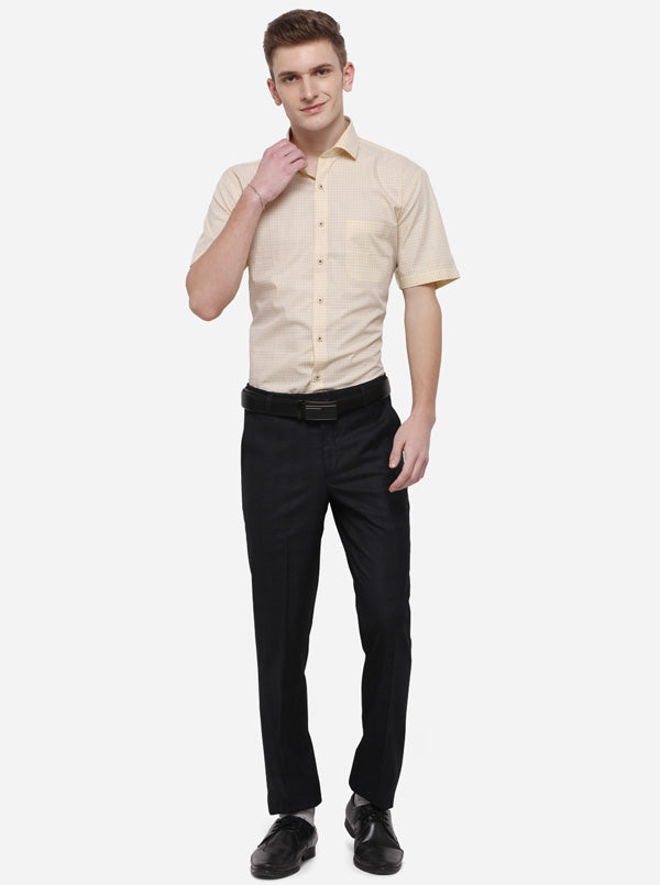 Achieve a stylish makeover by donning these plain black trousers. Made to perfection, these slim fit trousers feature belt loops, 4 functional pockets, and single button closure and zip fly. It can be styled with beige shirt and moccasins. Walk in style by donning these men's formal trousers and let your style be your identity when you step out wearing this branded men's formal trousers.