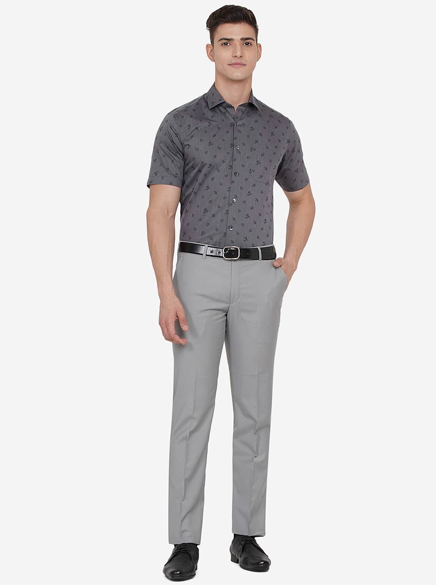 Grey Printed Slim Fit Formal Shirt | Greenfibre