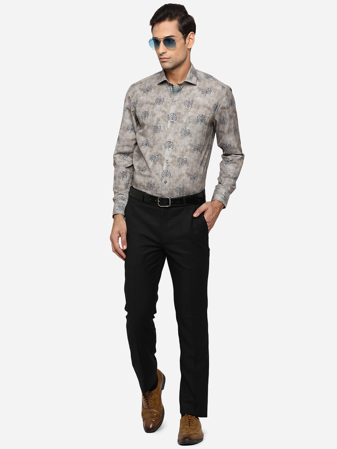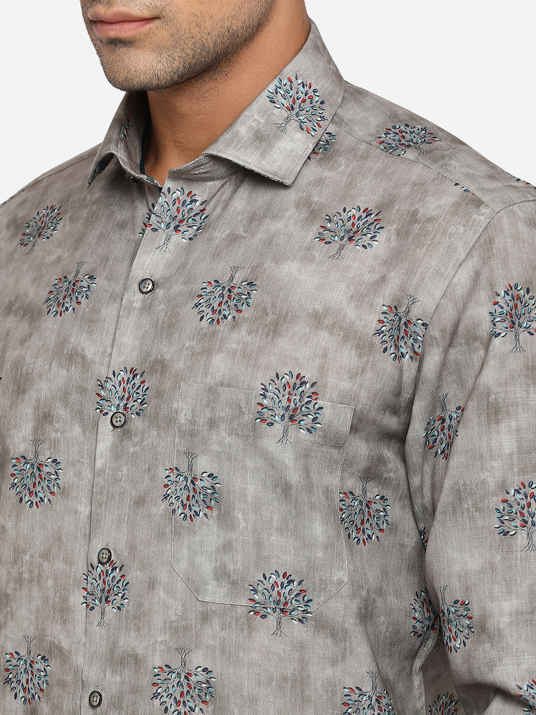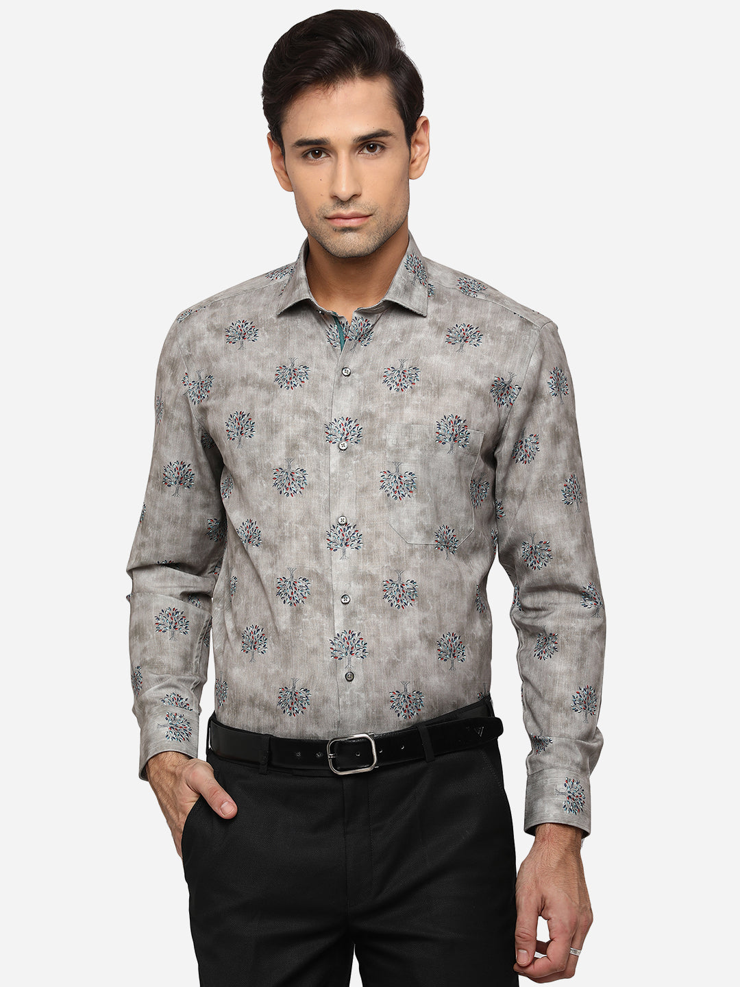Grey Printed Slim Fit Party Wear Shirt | Greenfibre