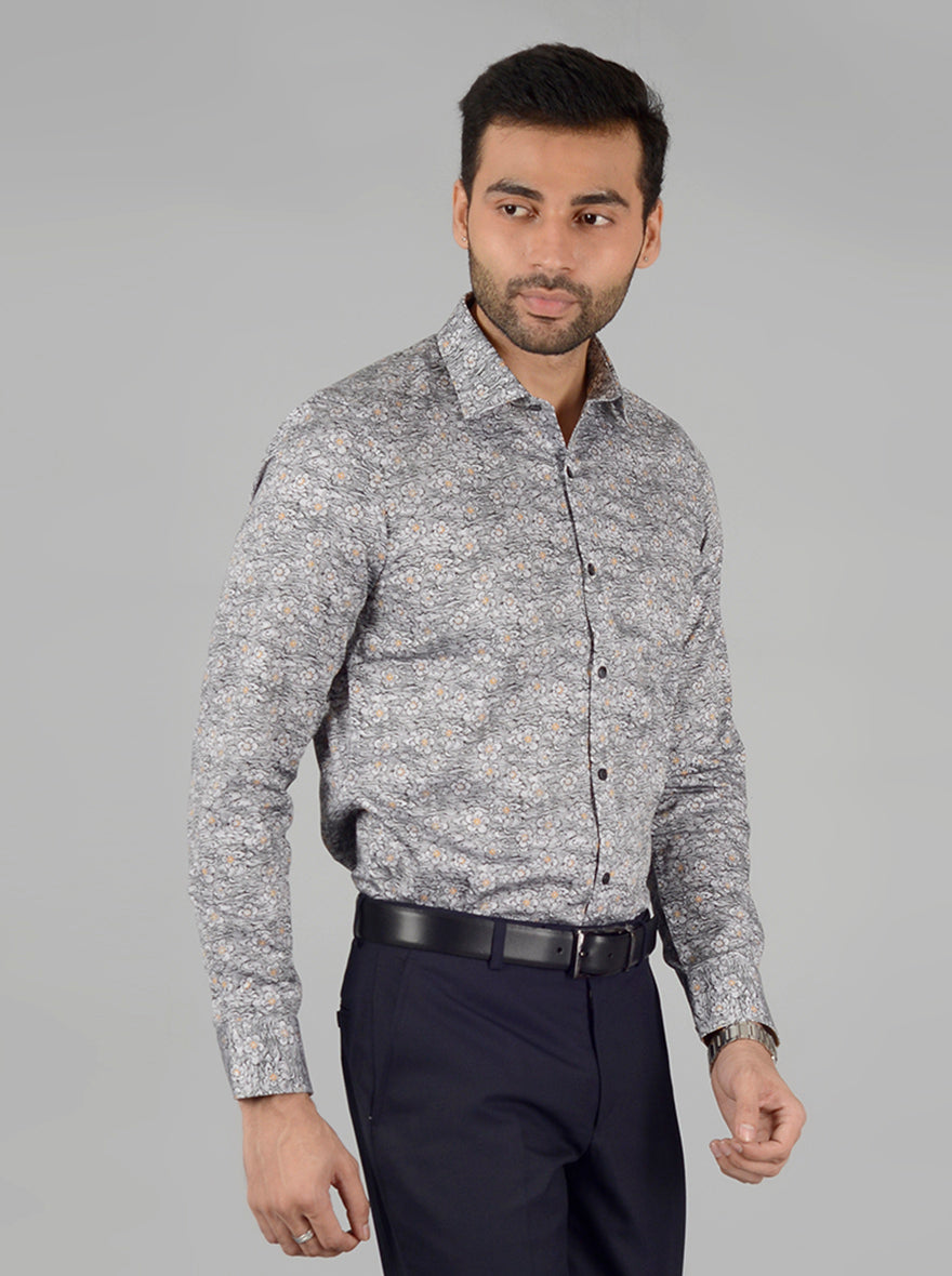 Grey Printed Slim Fit Party Wear shirt | Wyre