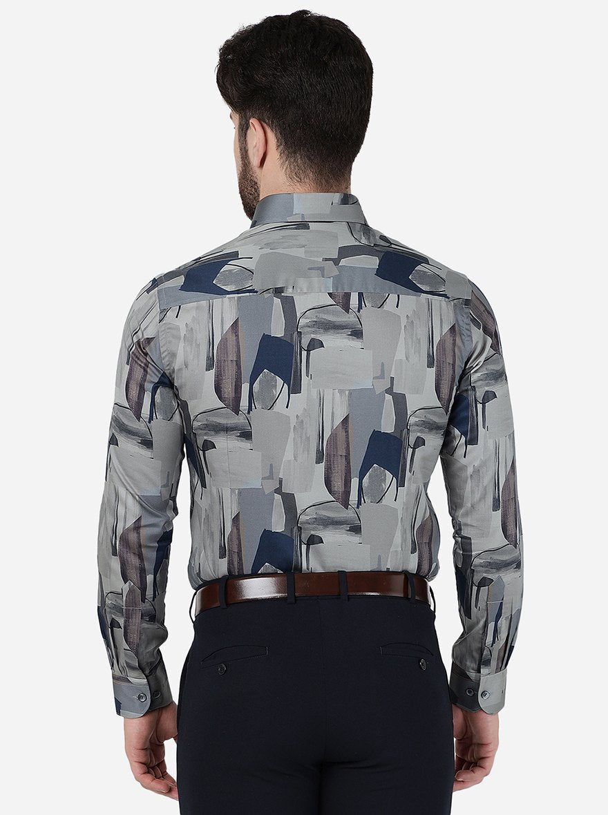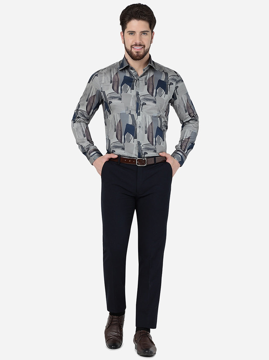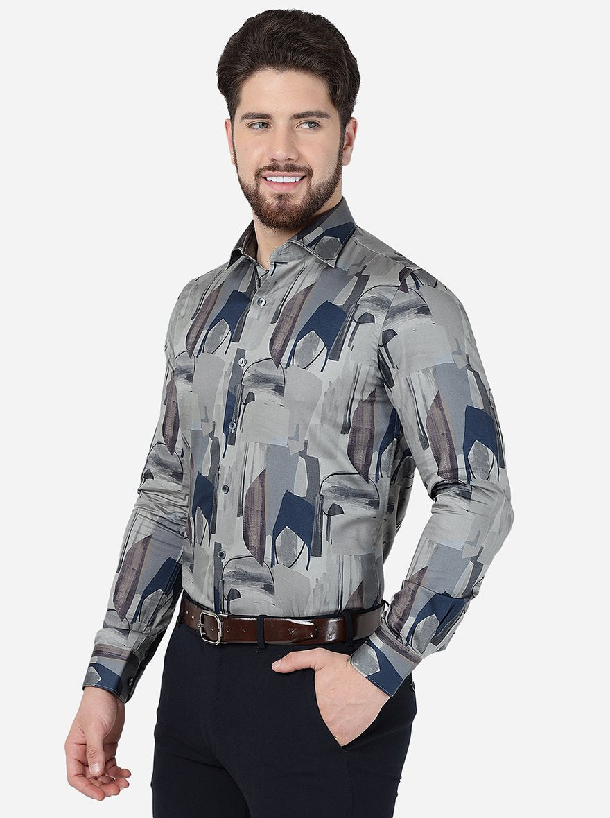 Grey Printed Slim Fit Party Wear Shirt | Wyre