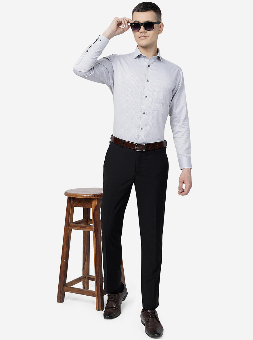 Grey Printed Slim Fit Formal Shirt | Greenfibre