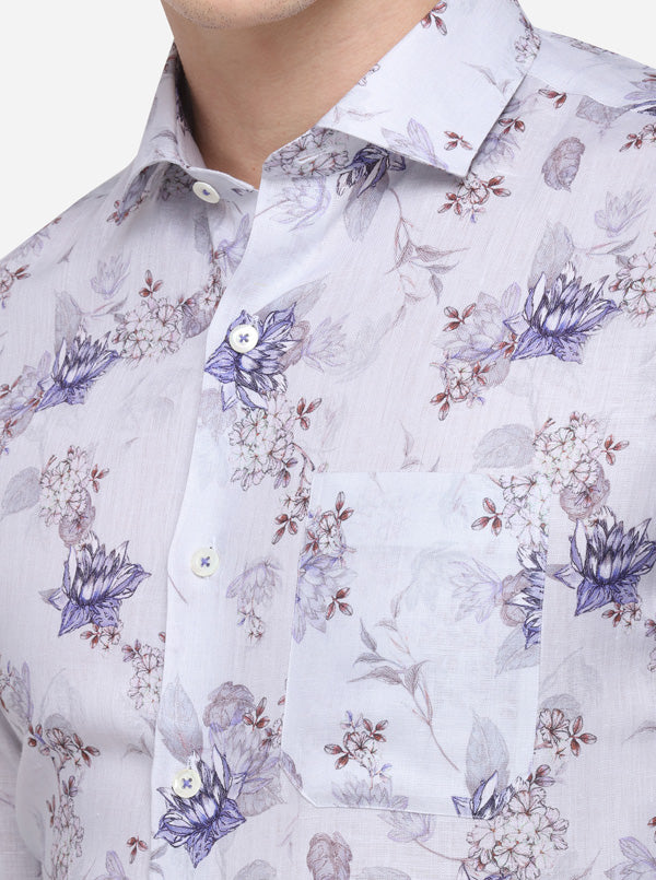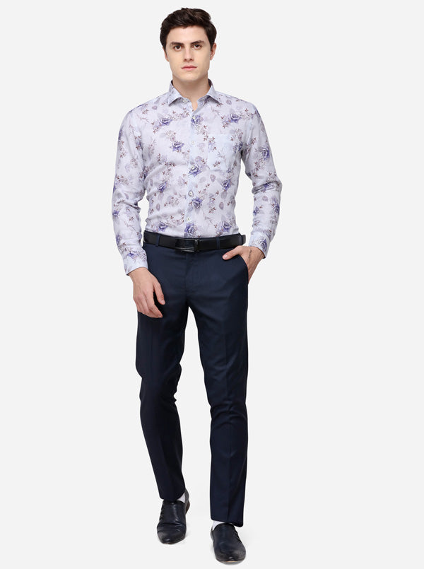Grey Printed Slim Fit Formal Shirt | JadeBlue