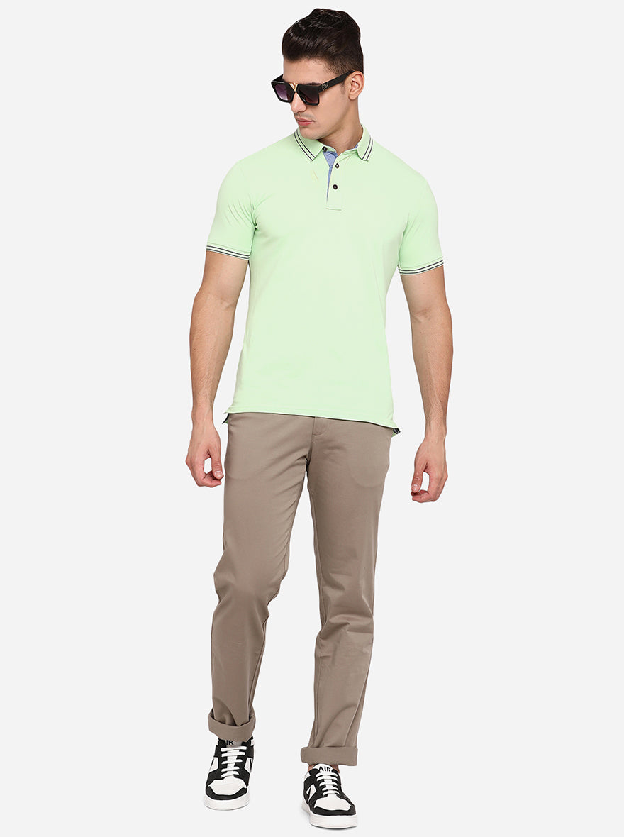 Look stylish and fashionable wearing this Grey Trouser from the latest collection of Greenfibre. It features a button and a zip closure and comes with two pockets on the front and two at the back. Offers a slim-fit. Adorned with a solid pattern, making up for a timeless choice. Crafted with premium Cotton, it promises you a soft touch and the best of comfort during extended hours. Perfect for casual wear. Match it with a solid shirt af your choice nd a pair of oxford shoes to create a stylish look.