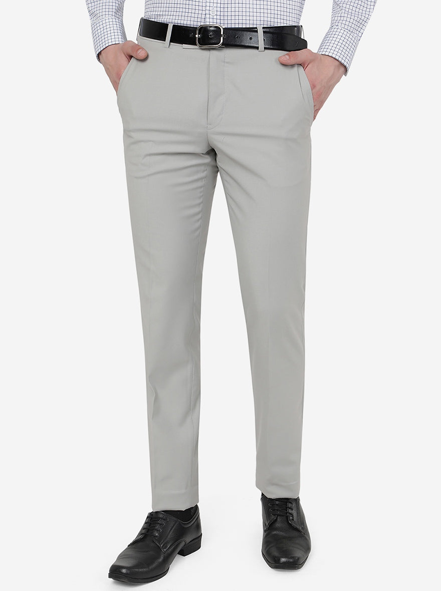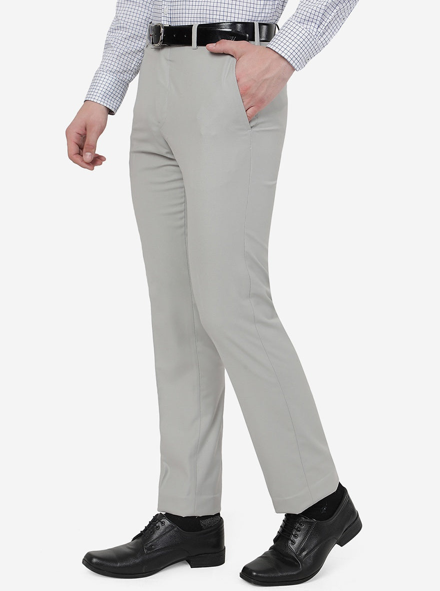 Details: A wardrobe must, this Grey Formal Trouser from Metal is the one for your wardrobe. Built with Terry Rayon promising to give a formal look as well as comfortable to wear. Offers a Mid waist Slim fit Trouser with pocket, a fly, and a button for closure. Team it with a solid-coloured shirt and classic oxfords for a formal look. Perfect for a daily formal look.