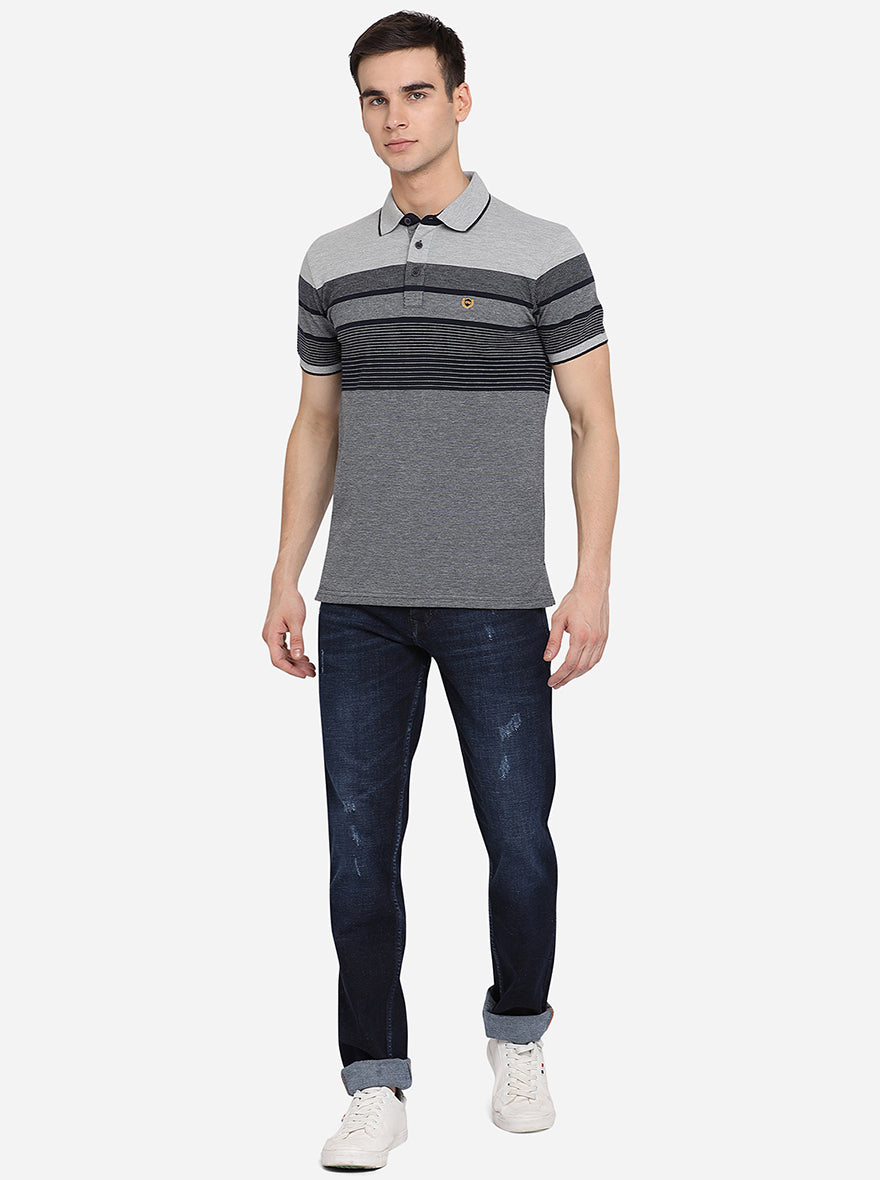 Details: Flaunt a dapper look by dressing up in this Grey Polo T-shirt from the latest collection of JadeBlue. It features a Polo neck, half-sleeves and offers a slim fit. Adorned with a stripe printed pattern, it makes up for a smart choice. Crafted with Pure Cotton, it ensures a great comfort and a great breathability during long hours. Perfect for casual wear and weekend wear. Team it with a pair of Blue denim and white sneakers to achieve a cool look.
