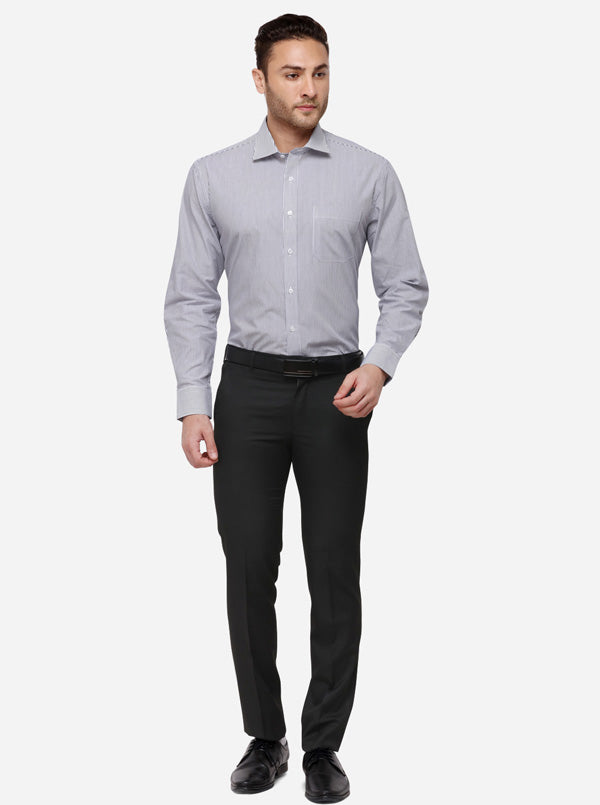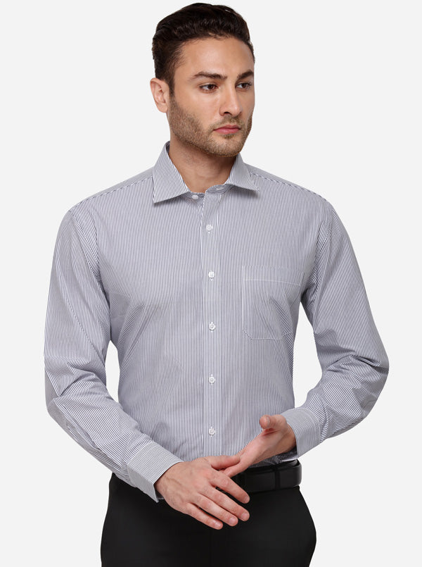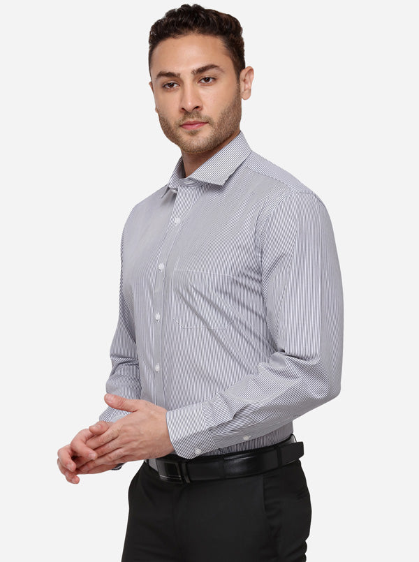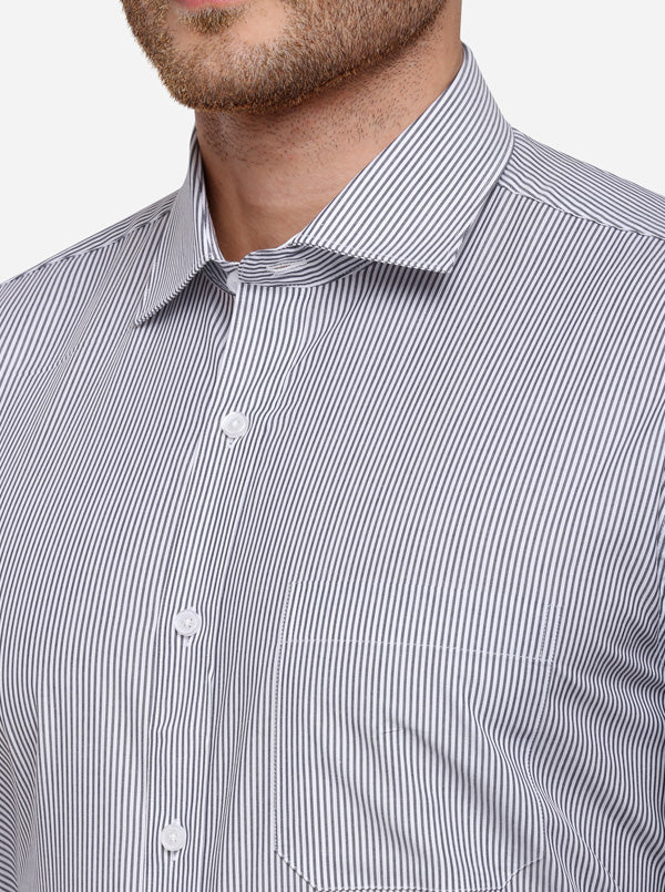 Grey & White Striped Regular Fit Formal Shirt | JadeBlue