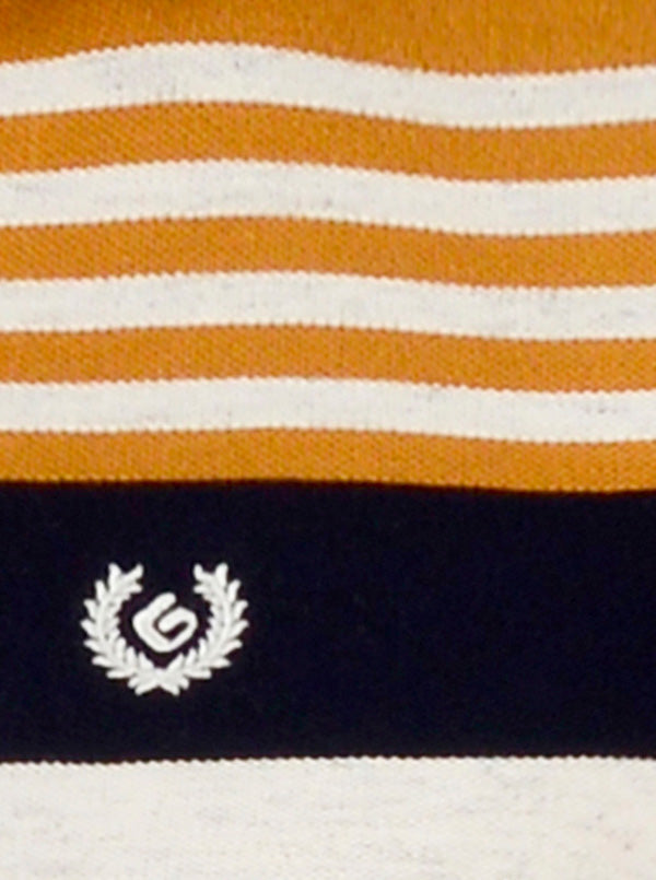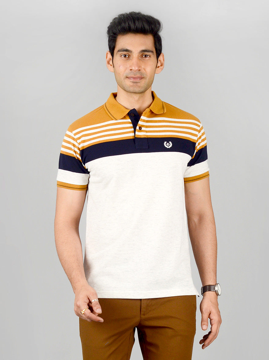 Grey & Yellow Striped Slim Fit Polo T-shirt | Greenfibre