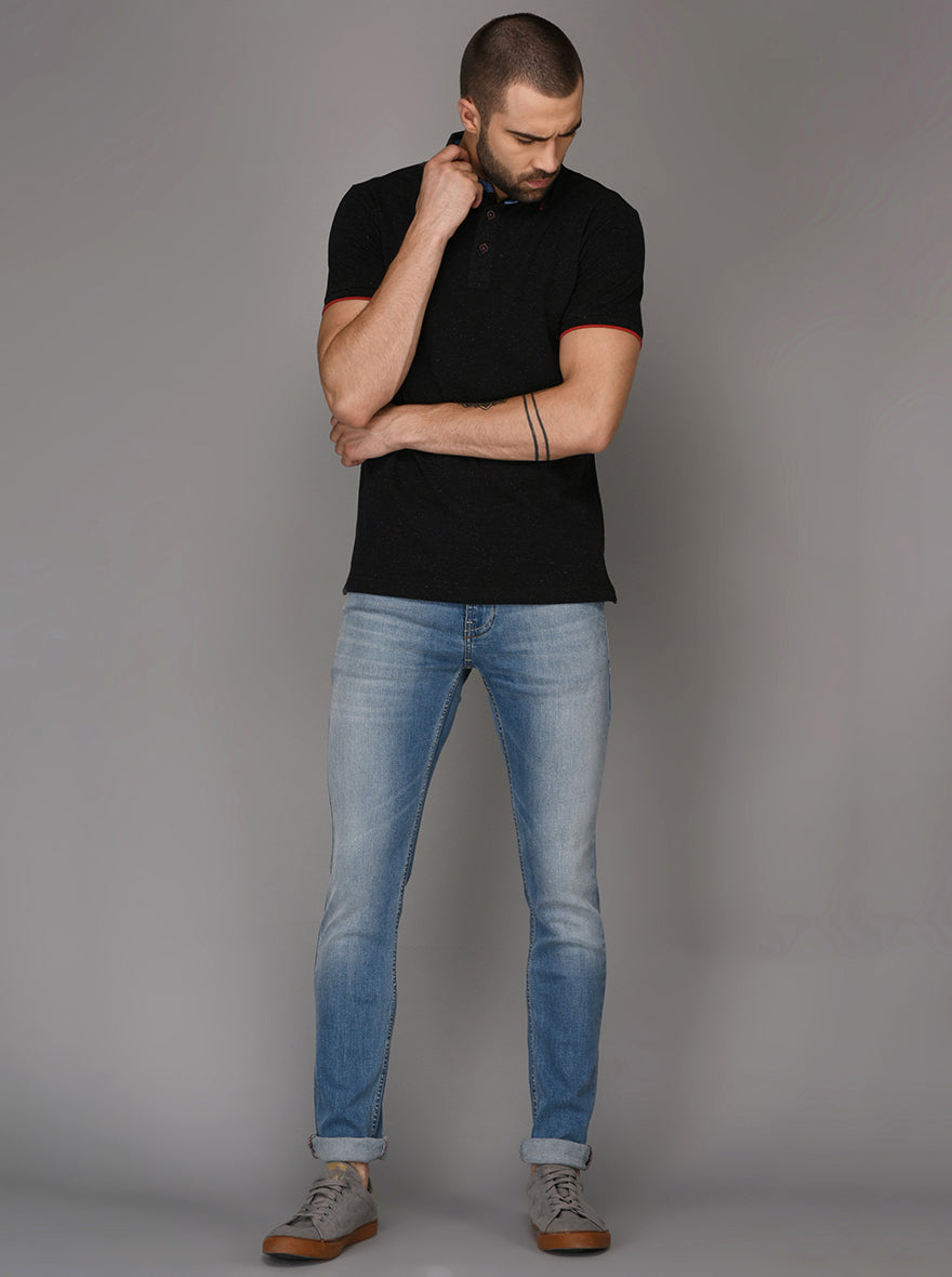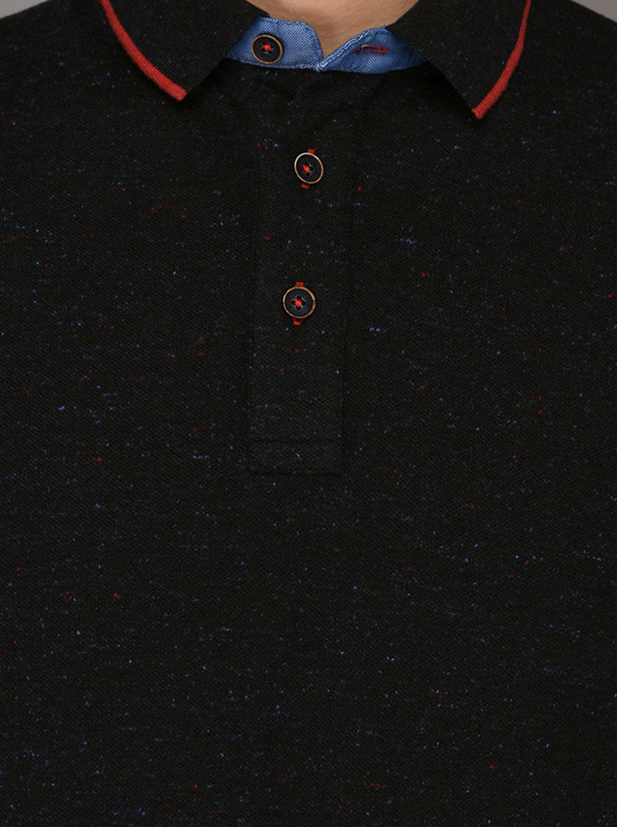Gun Powder Black Self Textured Slim Fit Polo T-Shirt | JadeBlue