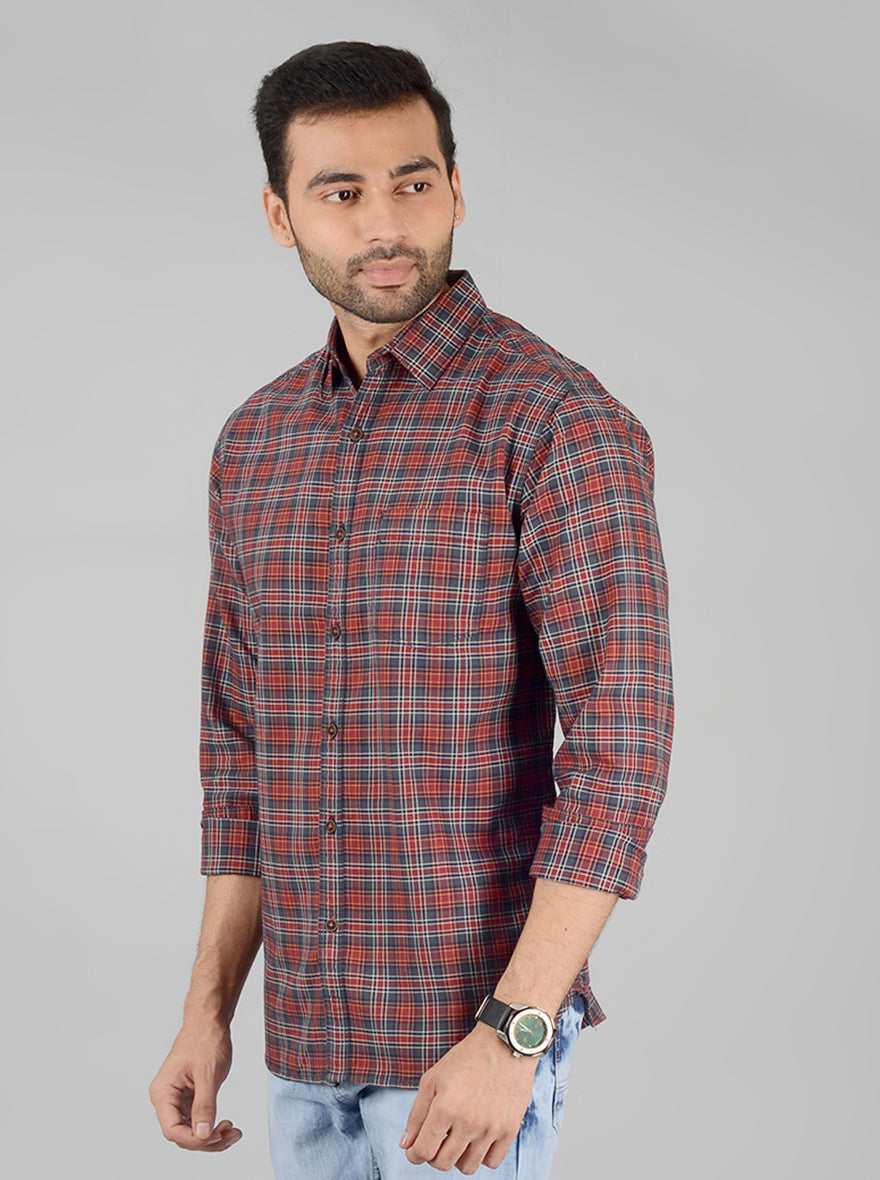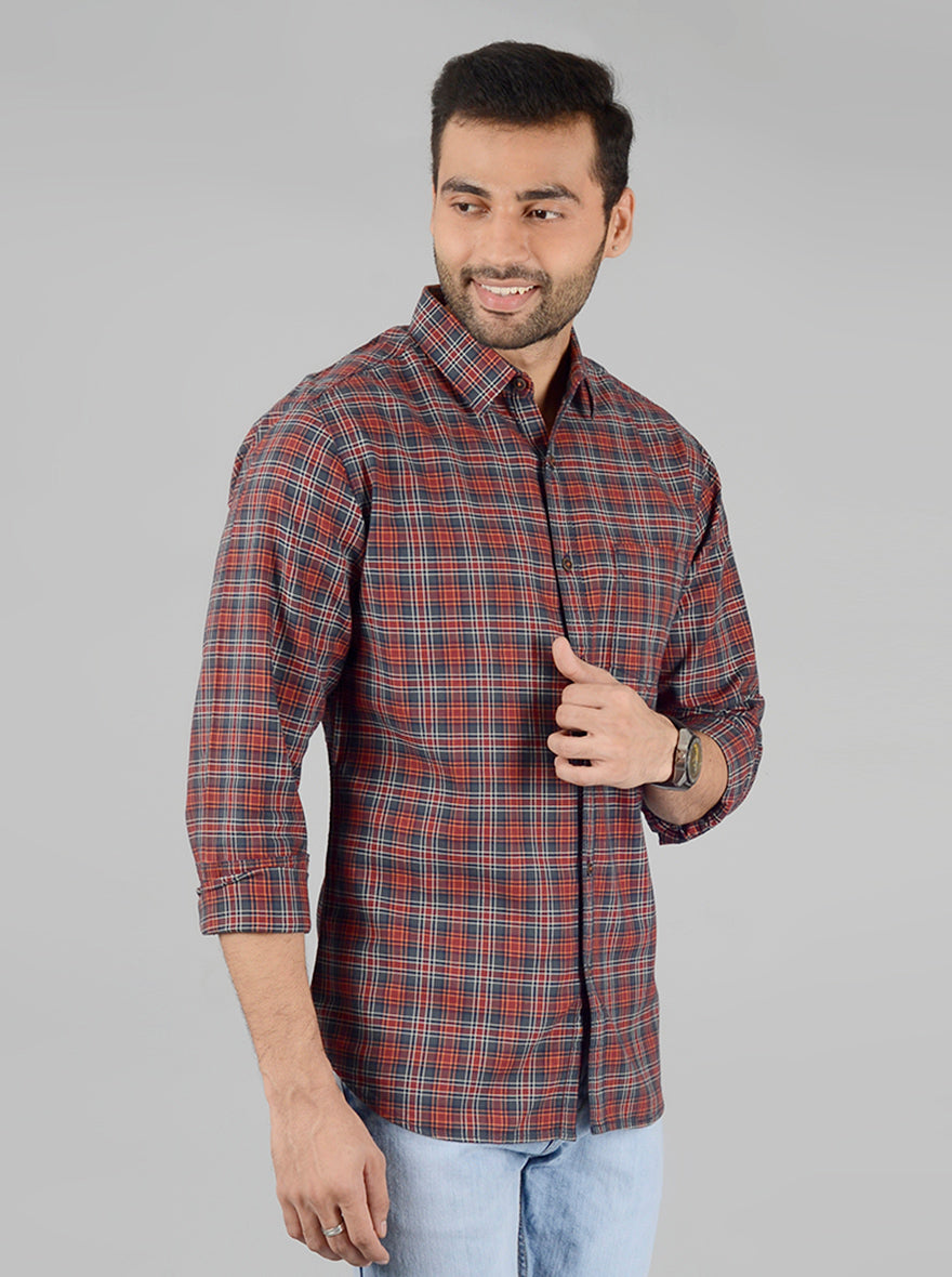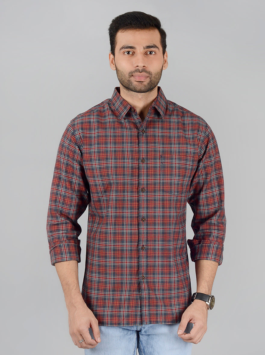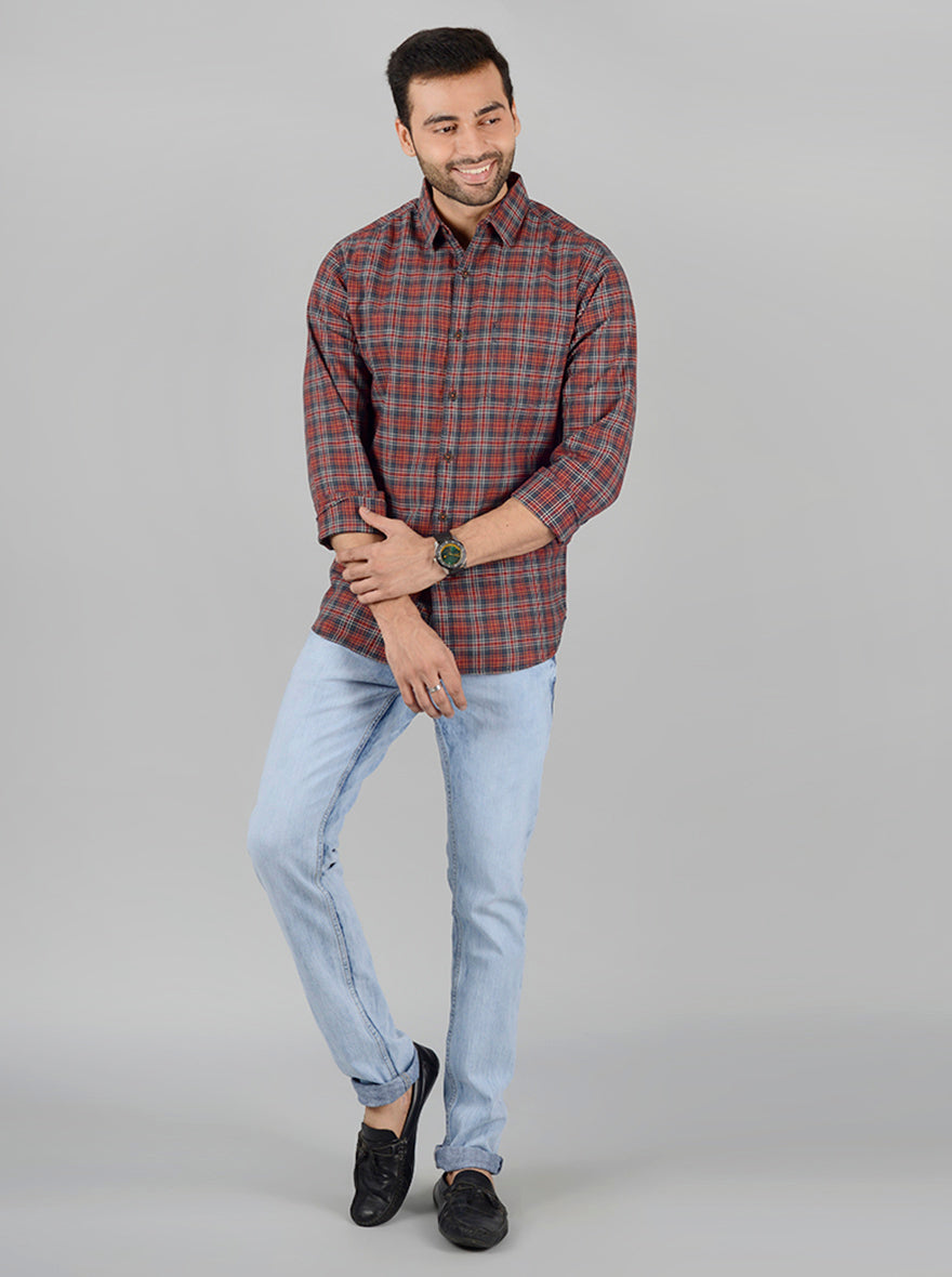 Details: Add this appealing checks holly berry shirt to your wardrobe and get ready to stay stylish. This slim fit cotton shirt is what you require to achieve a stunning look. Pair it with shades, black jeans and loafers.