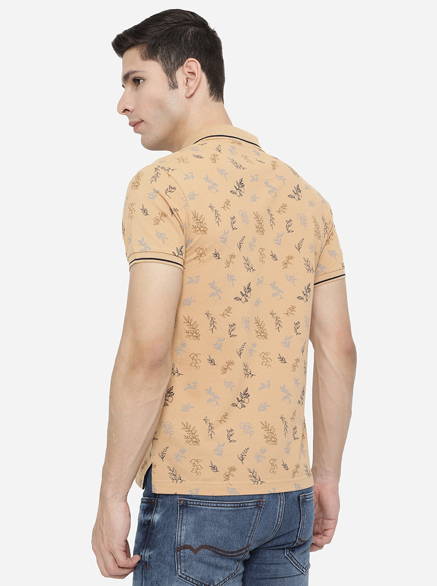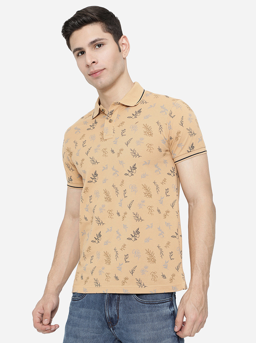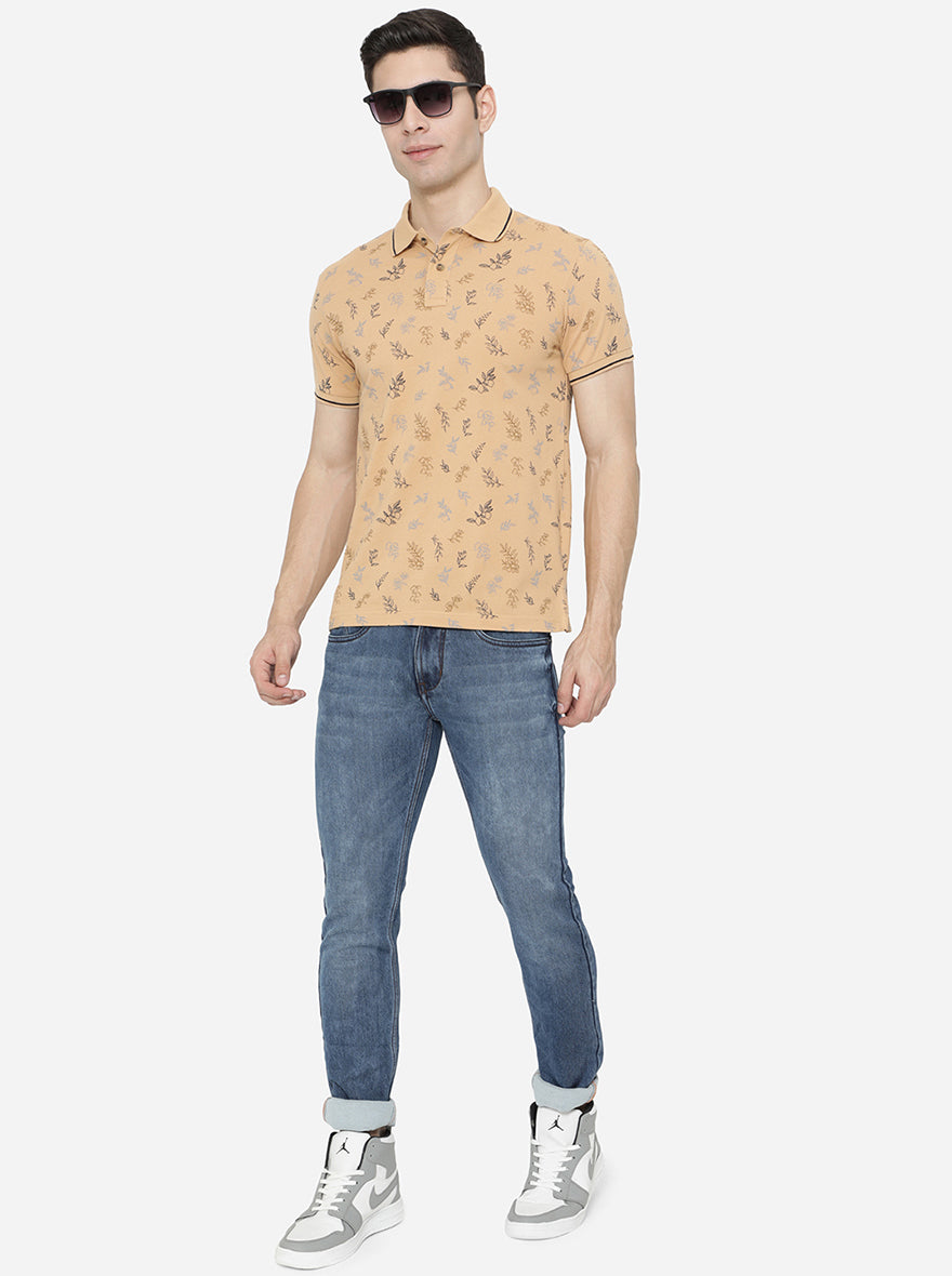 Honey Yellow Printed Slim Fit Polo T-Shirt | Greenfibre