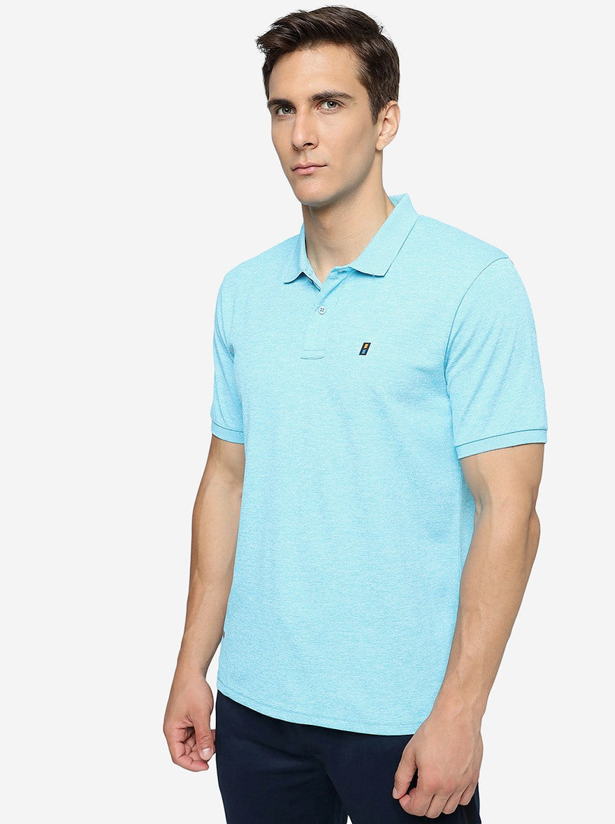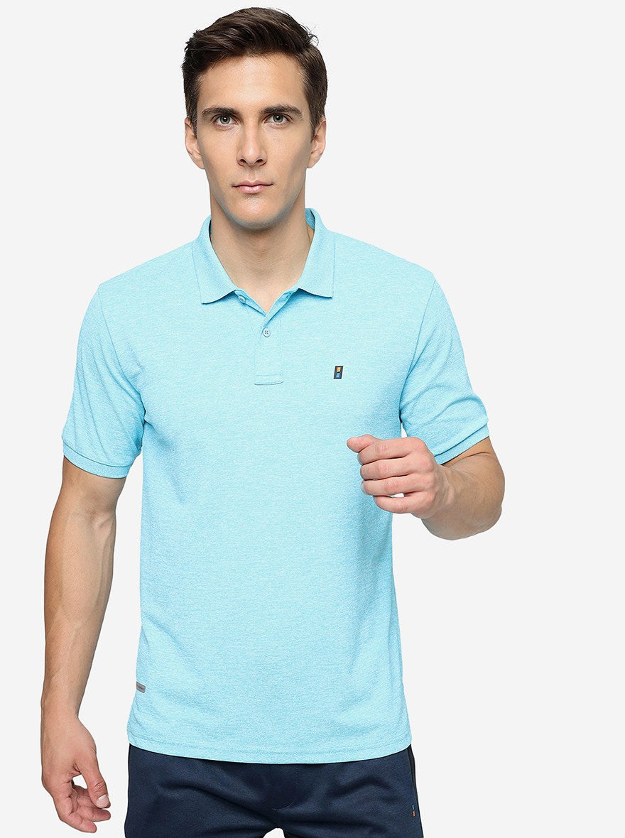 Ice Blue Melange Solid Slim Fit T-Shirt | Jade Play