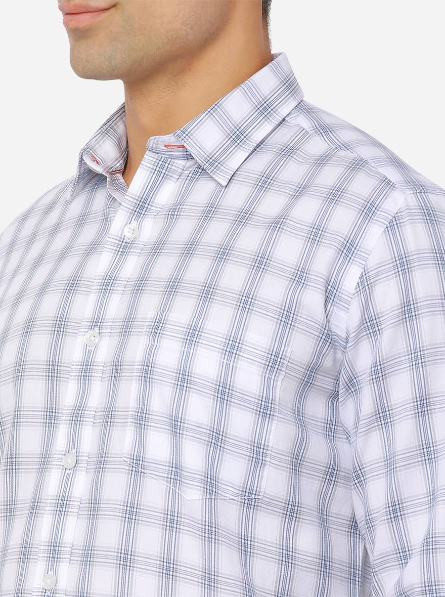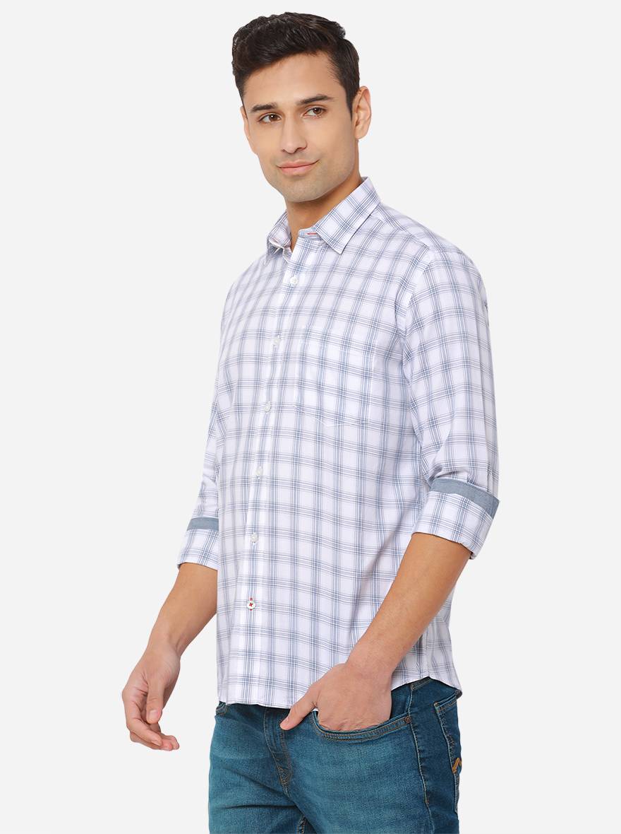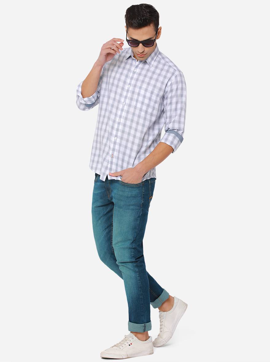 Details: Create an effortless look by dressing up in this stylish White checkered Shirt from the latest collection of JadeBlue Sport. It features a shirt collar, button placket, full-sleeves and offers a slim-fit. It is adorned with a checkered pattern, which makes it a best pick. Perfect for semi-casual wear or weekend wear. Crafted with pure cotton, it allows a great comfort and a great breathability during long hours. Team it with a well-fitted bottomwear and sneakers to complete the look.