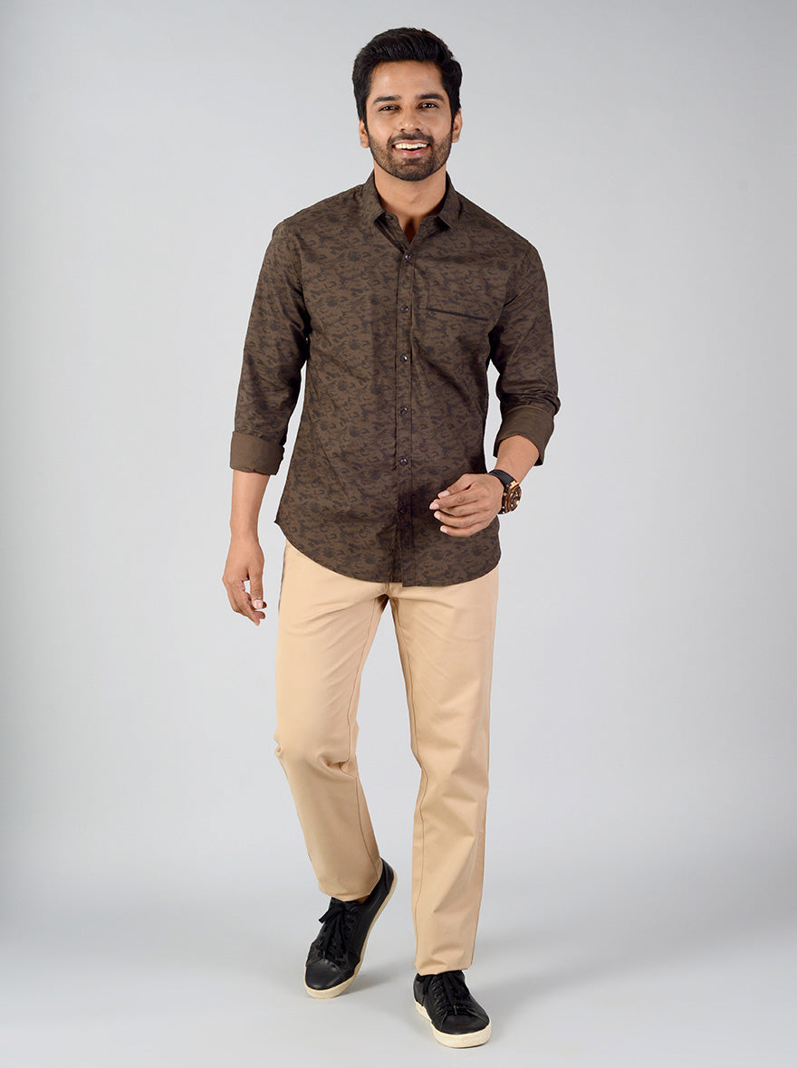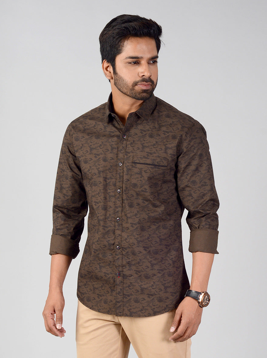 Ivy Green Printed Slim Fit Casual Shirt | Greenfibre