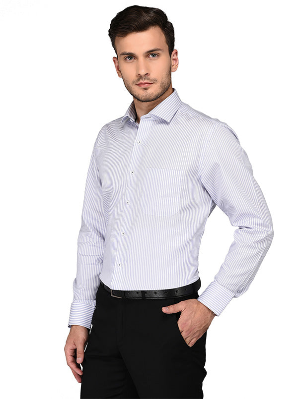 JadeBlue White & Blue Striped Regular Fit Formal Shirt