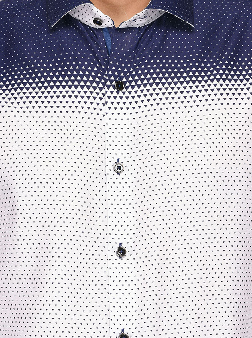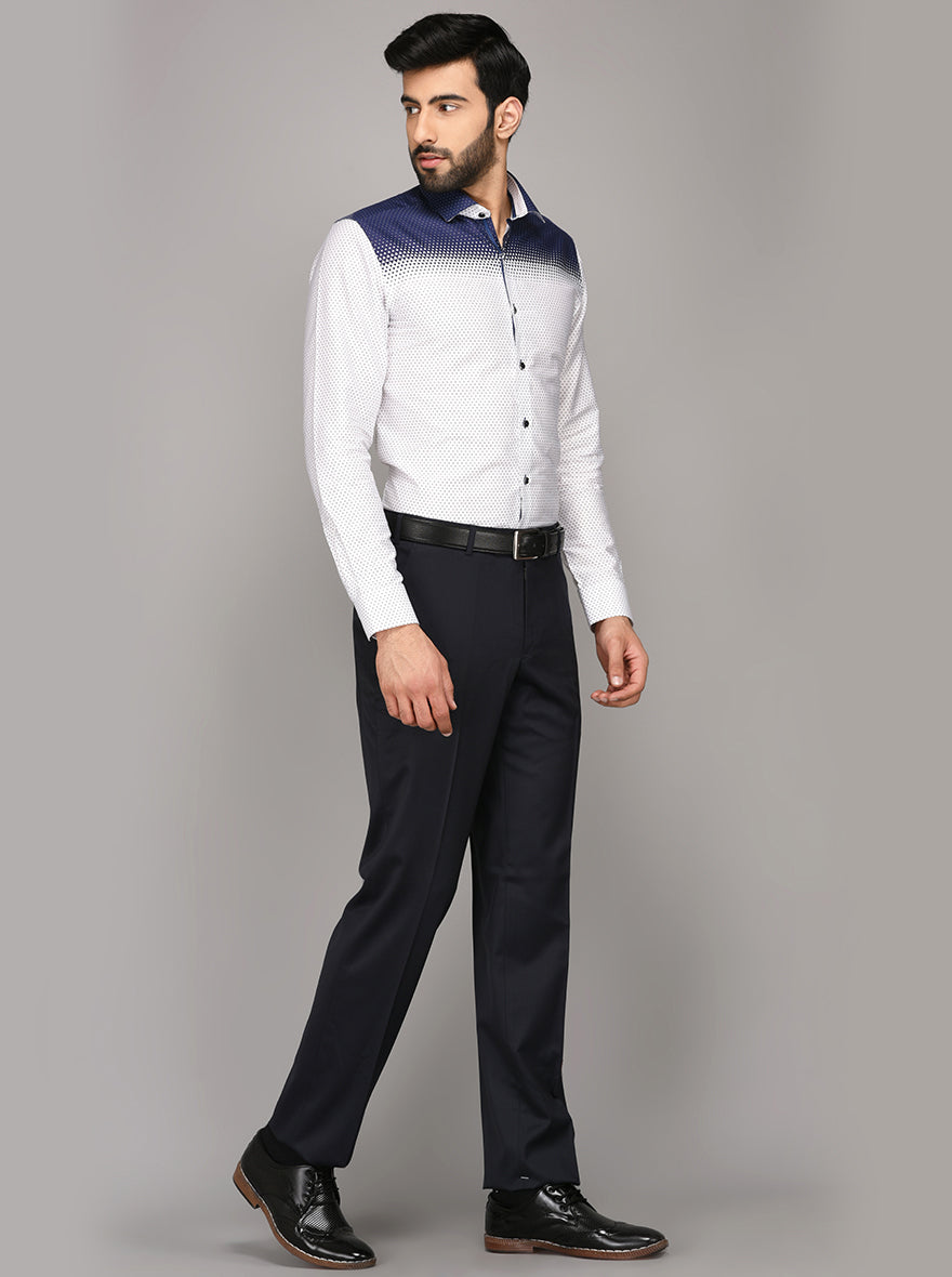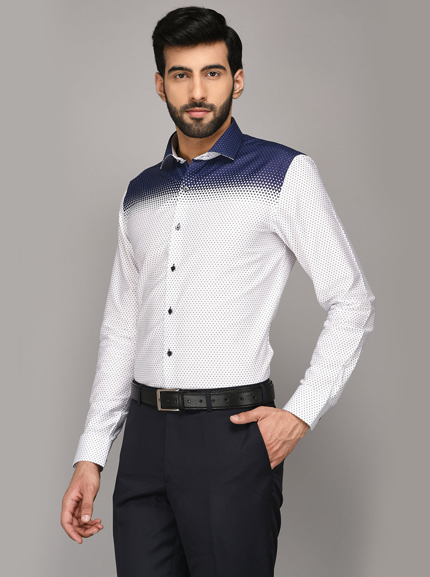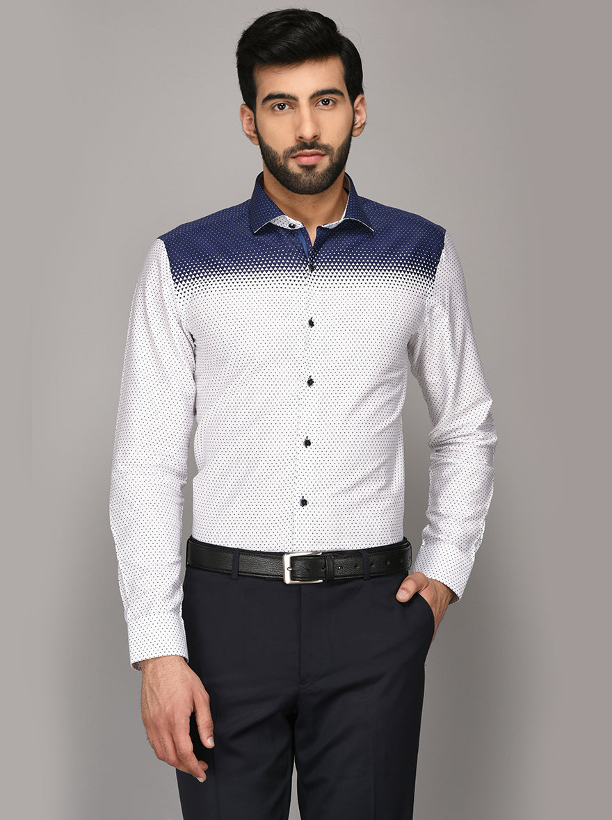 JB Studio White & Blue Printed Slim Fit Party Wear Shirt